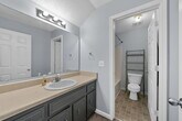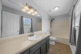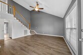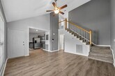 Updated and very well cared for 3 bedroom 2.5 bath home that features all living space in the main floor along with the primary bedroom suite! There is ample storage in the eat in kitchen and a desk nook and the Living room is plenty spacious for gathering! Additional bedrooms and full bath located upstairs. Large fully fenced in backyard features a deck and a patio perfect or entertaining! Each person 18+ of age who will occupy the home must submit separate applications. Applications are $45 per person