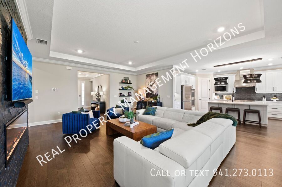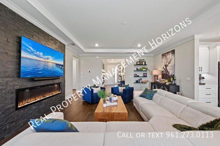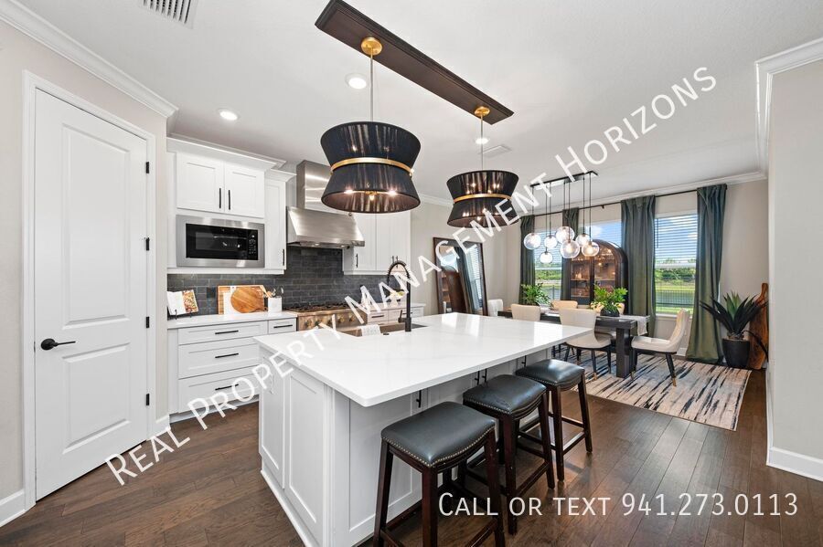 Real Property Management Horizons are delighted to offer for rent this exquisitely designed, modern luxury property, that breathes architectural elegance. This stunning 5-Bed, 4.5-Bath, pet friendly property in Park East - which can be furnished or unfurnished - has been built with perfection in mind, encapsulating unparalleled craftsmanship and quality as well as offering a lifestyle of comfort and sophistication. This treasure trove of a home abounds with key features that promise a serene and enriched living. Equally impressive is its prime location which ensures convenient access to top amenities, thereby providing an enriched living experience. Highly rated schools nearby augment the property's offerings, making it perfect for families. Come along and discover the blend of comfortable living and urban proximity this property generously offers. This spacious home offers a unique blend of style and comfort with its five generously sized bedrooms and 4.5 well-appointed bathrooms. The property comes with the option of being furnished or unfurnished, catering to your specific needs. An expansive open plan living space incorporating kitchen, dining, breakfast bar, the great room, even feeding into the flex room / office dominates the rear of the property, overlooking the lanai and back yard. Sharing the view is the master suite, separated from the other three first floor bedrooms to offer privacy. Plenty of storage closets along with laundry and foyers complete the first floor. A spacious loft / games room awaits at the top of the stairs with more storage, a full bathroom and fifth bathroom. The triple garage, complemented by a driveway that can accommodate multiple vehicles, ensures ample parking space. The large fenced backyard provides a secure outdoor space for you and your pets. The community amenities are sure to impress, with a sparkling pool for those hot summer days, a soccer pitch for the sports enthusiasts, and a playground for outdoor fun. This property offers a lifestyle of convenience and enjoyment in a desirable location. This property, quite simply, must be seen in order to fully appreciate the accommodation on offer. Pet Friendly, however pets are liable for rent/deposit. Marketing price is for an unfurnished property - furnishings are negotiable. Available Immediately for a twelve month Lease. Tenants will be liable for a Set-Up Fee of $200.00 in addition to the Application Fees Check out our website for a brief video tour. Community Soccer Pitch And Playground Flex Room/Office/Den Furnished Or Unfurnished Immaculately Finished And Furnished Large 2nd Floor Loft With Bedroom And Full Bathroom Large Fenced Back Yard Open Plan Living Incorporating Kitchen Dining Breakfast Bar & Living Room Pets Considered Swimming With Clubhouse & Outdoor Dining Area Triple Garage With Driveway Parking For Multiple Vehicles