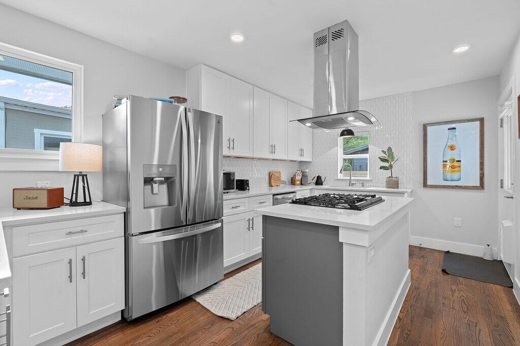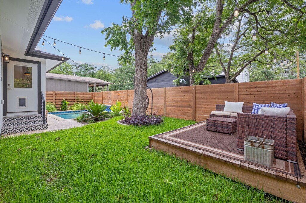 Feel at home in this stylish South Austin retreat, a beautifully remodeled home located just minutes from SOCO and Downtown. Tucked away on a sunny corner lot in the relaxed South Manchaca neighborhood, this home offers three cozy bedrooms and two modern bathrooms. The open-concept living area features reclaimed hardwood floors, cozy seating, and a welcoming ambiance. The fully equipped kitchen boasts sleek quartz countertops and brand-new appliances. Step outside to enjoy the private fenced-in backyard, complete with outdoor seating, a propane barbecue grill, and a sparkling, non-heated pool. The front yard also offers a charming seating area. Additional perks include a private washer and dryer and driveway parking for one car. Free street parking is available on a first-come, first-serve basis. Nestled just four miles south of Downtown Austin, South Manchaca is a laidback, tree-lined neighborhood known for its charm and relaxed vibe. This peaceful, residential area offers quick access to some of Austin’s top attractions, including South Congress Ave, Central Market, and Sunset Valley Marketfair. Nearby restaurants include Casa Maria, Sabor Venezolano Austin, Veracruz All Natural, Austin Java, and Tuk Tuk Thai Cafe. Nearby pubs and bars include Spokesman Coffee, Rusty Cannon Pub, Baker St. Pub and Grill, Twin Peaks, and Bouldin Acres. Nearby grocery stores include Randalls, Central Market, Wheatsville Food Co-op, Sprouts Farmers Market, and H-E-B. No pets are allowed at this vacation rental. Smoking is not allowed, and the minimum smoking fee is $200, but the total charge may be higher if the property's condition renders it temporarily unrentable. Parties or events are not allowed. Quiet hours are from 10 PM to 7 AM. If any furniture is moved, please place it back in the original space where it was found. Additional charges, including shipping fees, may apply if personal items are left behind. In the event that you need to use the hard key, please place it back in the lockbox before departing. Failure to return any keys used to the lockbox will result in a $50 replacement fee per key. Please do not set the home's thermostat above 76 (heating) or below 68 (cooling). To avoid overloading the system, please adjust the thermostat by no more than 2 degrees per hour and keep the doors and windows closed as much as possible. [SI]