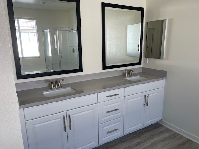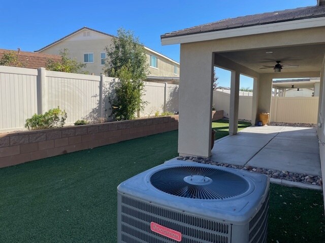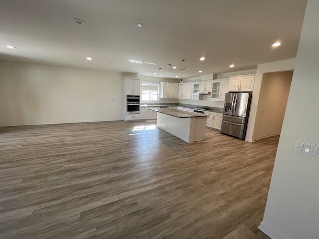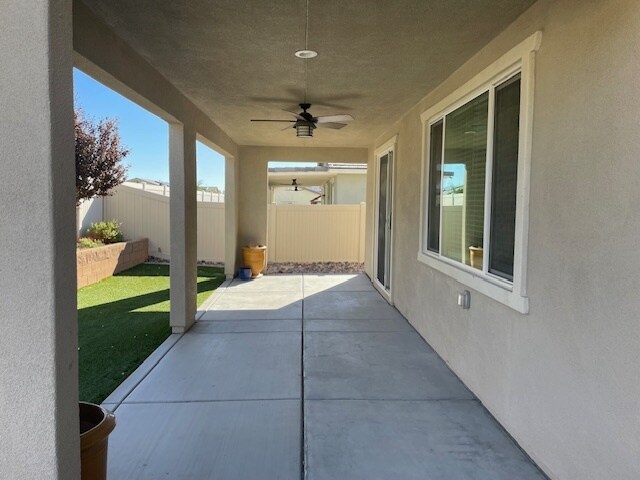 This beautiful, freshly painted, single story, 4-bedroom, 2.5 bathrooms offers over 2,600 sq. ft. of bright, open living space. The 4th bedroom has been used as an office/study with custom built-in cabinetry with a newer barn door. This well-maintained home has a spacious, open living area with 10 foot ceilings. Carpet is in 2 bedrooms with luxury vinyl flooring throughout the rest of the home. The kitchen is equipped with all stainless steel appliances and farmhouse sink, gas stove, built-in microwave, double oven, dishwasher, refrigerator and a large island with plenty of seating. The granite countertops and kitchen cabinetry provide plenty of space for any cooking task in addition to the large, walk-in pantry. The master bathroom includes double sinks, a large tub and a walk-in shower with an adjacent walk-in closet with built-in organizers. This home offers indoor laundry with a washer and dryer included. The 2-car garage has overhead storage racks and rubberized flooring and there is an oversized driveway that can be used for RV storage. This house has solar, which is extremely efficient, and the owner has never had to pay an elecricity bill. The backyard has been completely finished, has a large outdoor living space offering a covered patio, synthetic grass for easy maintenance, beautiful landscape and a large side yard with a storage shed. Owner will pay for twice monthly yard service. Enjoy a quiet street with quick access to the freeway and parks, shopping and restaurants. Non-smoking tenants only. Small dog ok.