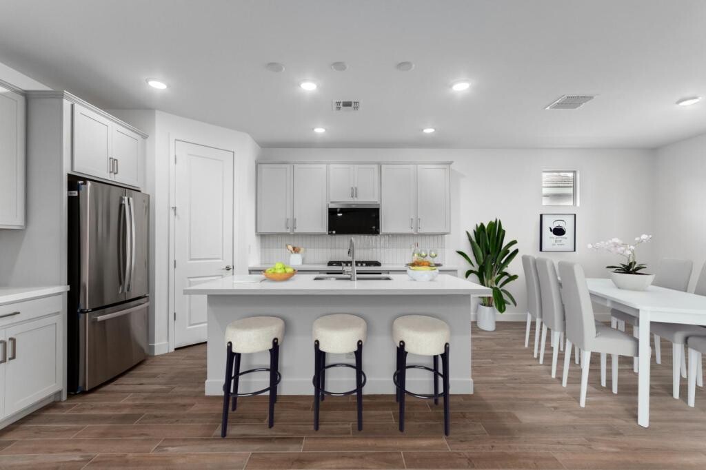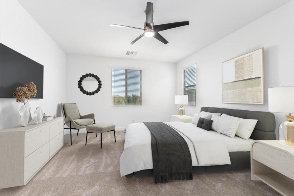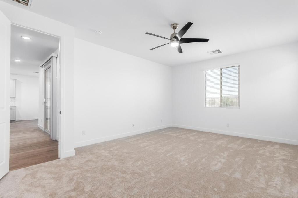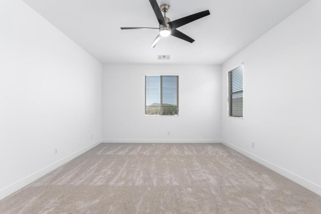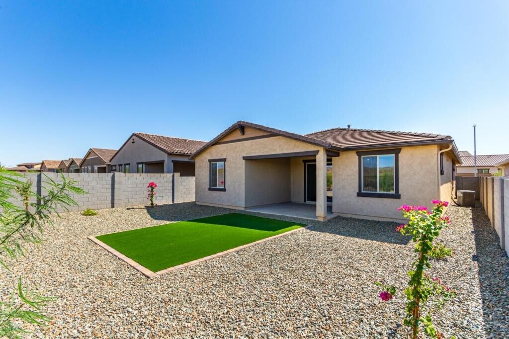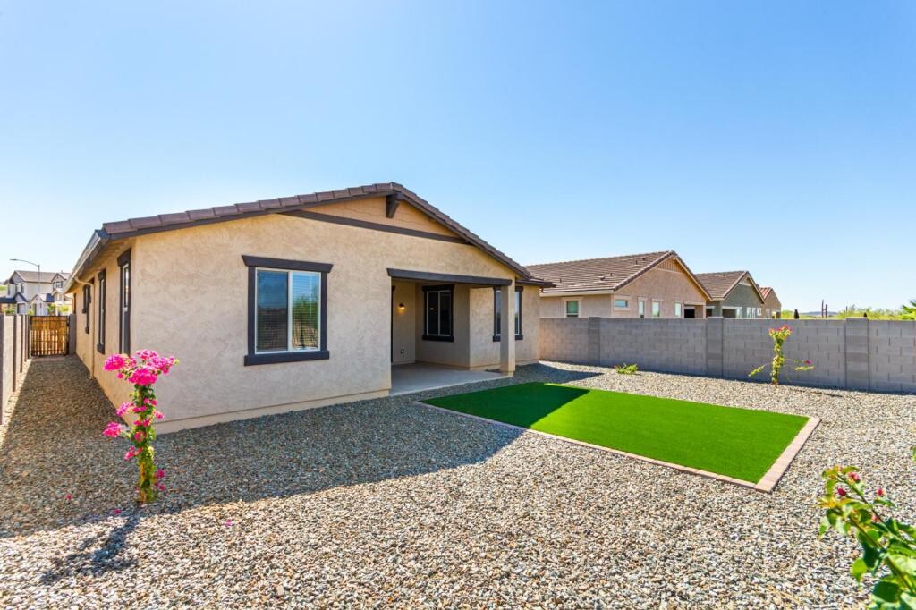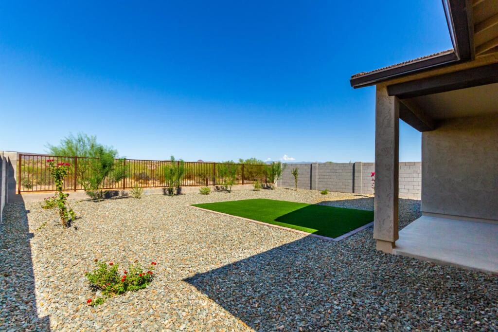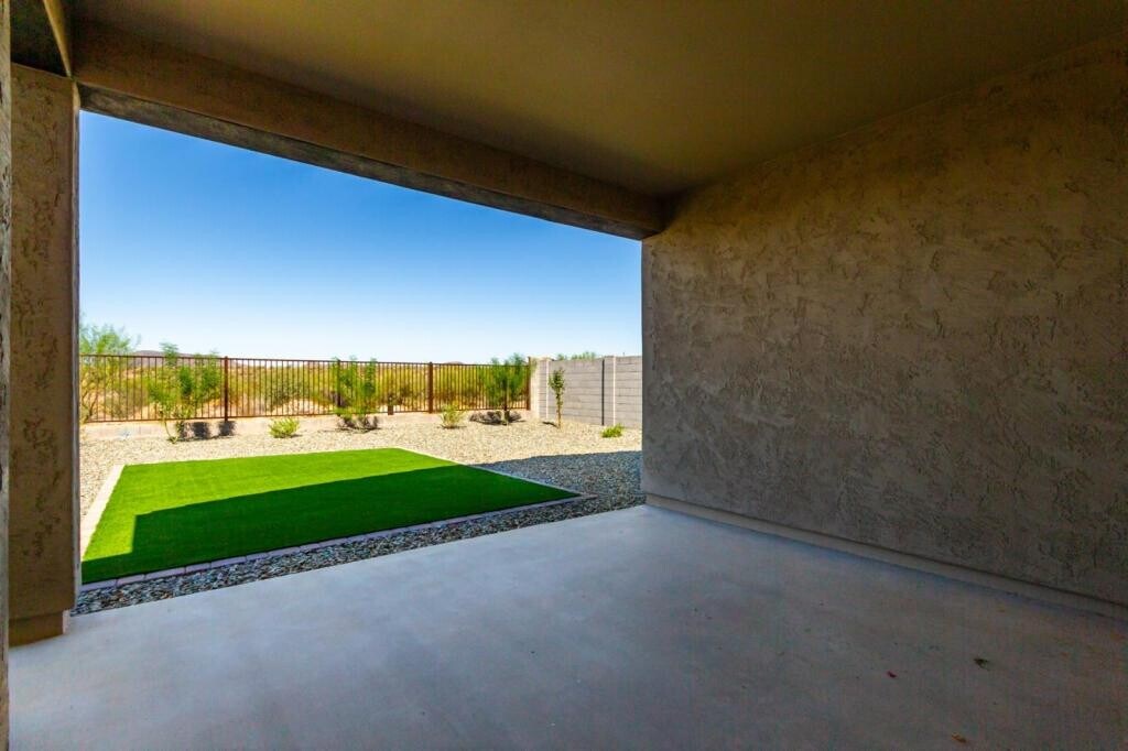 BRAND NEW, Open to natural reserve with gorgeous MOUNTAIN VIEWS! This NEW home offers 3 specious bedrooms, 2 full bathrooms, a 2.5 car garage, Stainless Steel appliances, counter-depth fridge included! Ceiling fans in all bedrooms and the great room. The kitchen is expertly designed with unobstructed views through the dining Great Room. Upgraded cabinets with soft-closing mechanism, quartz countertop, Modern and convenient single sink. The owner's suite is large inviting with access to a private owner's bath sizable walk-in closet. Great backyard with turf for easy maintenance plus a covered patio! View fence toward the beautiful sunset and gorgeous Mountain View in distance. The new BASIS Anthem, Great Hearts, Canyon Springs, Walmart, Outlet Mall, and Anthem Park are all nearby.
