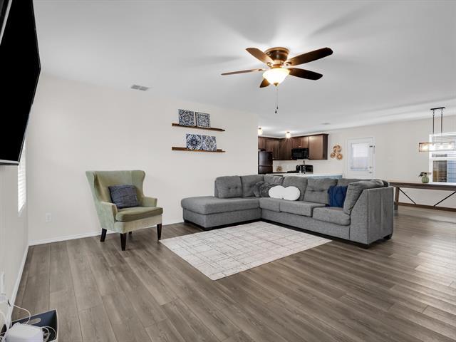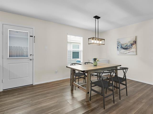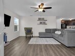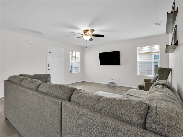 Welcome to this beautifully maintained 3-bedroom, 2-bathroom home, built in 2021 and located in the desirable Trinity Crossings community. With its contemporary design, open-concept layout, this home offers the perfect blend of style, space, and functionality. Step inside to discover a bright and inviting living area with luxury vinyl plank flooring, and large windows that fill the space with natural light. The modern kitchen—ideal for entertaining or everyday living. The primary suite offers a peaceful retreat, complete with a generous walk-in closet and a private en-suite bathroom with dual vanities and a walk-in shower. Two additional bedrooms and a second full bathroom provide flexibility for guests, a home office, or growing families. Outside enjoy a private backyard—perfect for relaxing or hosting weekend BBQs. The home also includes a two-car garage and energy-efficient features throughout. Community pool and park. Located just minutes from shopping, dining, and top-rated schools, Trinity Crossings offers a welcoming neighborhood atmosphere with the convenience