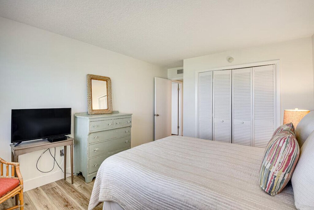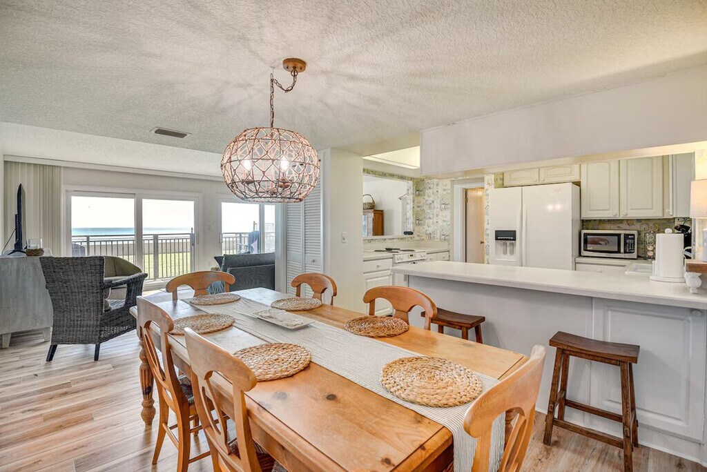 Feel at home in this 2-bedroom, 2-bath vacation rental in Ponce Inlet, FL. This single-story condo requires one step to enter. This apartment features smart TVs with cable, a DVD player, a dining table, a breakfast bar, a walk-in shower, and a shower tub combo. The kitchen is equipped with a stove/oven, refrigerator, dishwasher, cooking basics, dishware/flatware, a pod coffee maker (Keurig, bring your own coffee), blender, Crockpot, microwave, and toaster. Additional amenities include free Wi-Fi, central heating and A/C, a washer/dryer, laundry detergent, hangers, an iron/board, linens/towels, beach towels, trash bags, and paper towels. Underground parking is available for one vehicle in the garage, and one additional vehicle can be parked in the community parking lot. A slice of paradise awaits with stunning ocean views and a lush tropical setting. After a day at the Daytona Beach Boardwalk, filled with live music and shopping, retreat to the condo and enjoy a sunset picnic on the beach. Quiet hours are observed from 10:00 PM to 8:00 AM. No smoking, pets, events, parties, or large gatherings are allowed. Guests must be at least 25 years old to book. A photo ID may be required upon check-in. Includes a laptop-friendly workspace. [SI]
