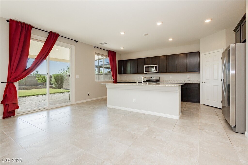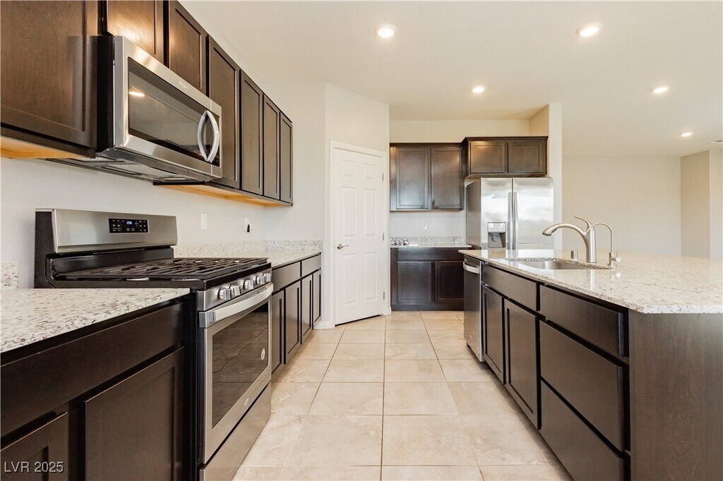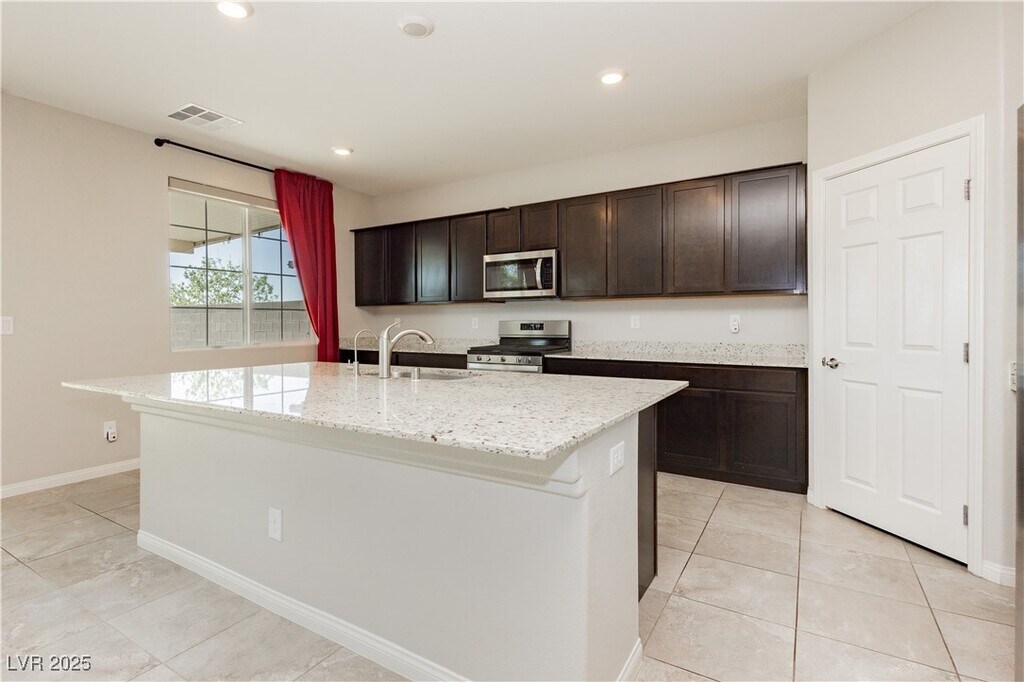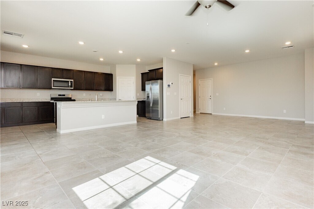 Open Concept and Move-in ready inside gated Gemini Pointe!! Directly across from Galaxy Park with grassy fields, shaded play areas, courts and more. This bright two-story blends open-concept living with thoughtful upgrades. The island kitchen offers extended cabinetry and counter space, granite countertops, stainless steel appliances, pantry, and a breakfast bar that opens to spacious living and dining areas ideal for everyday life and entertaining. Upstairs, a huge loft/flex room anchors the bedroom level. The oversized primary suite features a walk-in closet and walk-in shower; secondary bedrooms are nicely sized, and the laundry room is upstairs. Extra storage includes under-stair and hallway closets. Outside, enjoy a large private backyard with a covered paver patio, real lawn, mature trees, and no rear neighbors. Just minutes to retail, dining, and quick access to 215, I-15, and US-95.