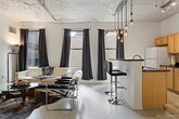 The condo is located on the 2nd floor inside the historic Midland Lofts building which is secured with a key fob entry system. There is a fully equipped fitness center and washer/dryer available on the 2nd floor. The 12-foot ceilings, over-sized windows and exposed pipes and brick give it an open loft feel. Primary bedroom is furnished with a king-size bed, nightstands and features a large walk-in closet. The kitchen and bathroom have been updated with slab granite countertops and hard flooring is laid throughout the living/kitchen area. Blackout window coverings ensure restful sleep. The built-in computer workstation with shelving offers extra room to work or play at high speeds, and wireless internet is included. We provide an amenity starter kit that includes essential toiletries and basic cleaning supplies. Furthermore, the home is meticulously inspected and cleaned after each move-out, with inventory fully restocked. The condo is fully furnished with linens, kitchenware - just bring your clothes and toiletries! Available long term, ask about rates! $75 one-time community fee for all move-ins. Internet, water, electricity (heat and AC) are included! Condominium MLS# 3350327