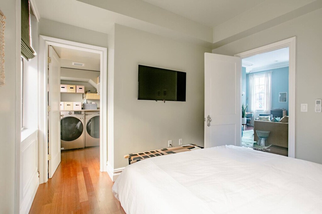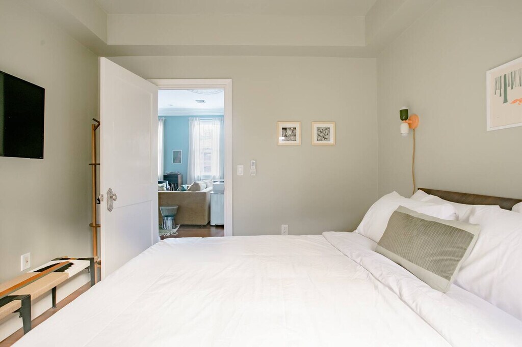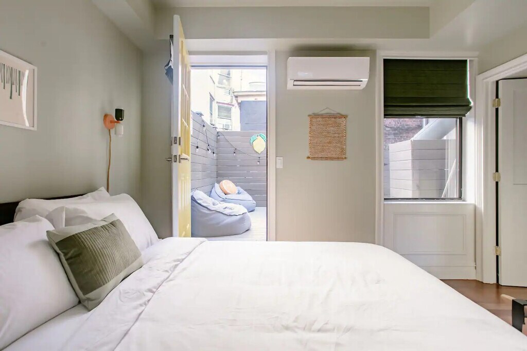 The advertised rate of $9,334/month is the lowest available price, based on a 30 day(s) stay with a move-in date of January 11, 2027. Rates vary depending on the duration of stay, season, and other parameters. For exact pricing and additional pricing components, please visit our website and enter your desired move-in and move-out dates. The rate is applicable when billed upfront; it can be higher if billed in multiple payments. Feel at home in this light-filled 1-bedroom apartment in Greenwich Village, located on the second floor of a classic New York City walk-up. Please note that the building does not have an elevator. This cozy apartment offers a full kitchen equipped with everything you need, including a dishwasher, and an in-unit washer and dryer. Relax in the living room on the plush sofa, which converts to a sleeper, or unwind in the bedroom with a memory foam mattress and luxury linens. The marble-accented bathroom features a tub/shower combo. A highlight is the private outdoor deck with dining and lounge seating. Dogs are welcome with a fee charged per pet. More than two dogs or pets other than dogs require advance written approval. Unreported pets are subject to a $50 additional cleaning fee per pet, in addition to the standard pet fee. Service animals performing trained tasks may be excluded from the pet fee; however, damage, disruption, or additional cleaning remains billable. Located in the heart of Greenwich Village, this apartment is steps away from groceries, coffee shops, dining, parks, and public transit. You're just minutes from Washington Square Park and within walking distance of SoHo, the West Village, and Union Square. The W 4th St. subway station is a few blocks away, providing easy access to the rest of Manhattan and beyond. As with most New York City apartments located in vibrant neighborhoods, you may hear some street noise from 6th Avenue, especially in the living area. The bedroom is located at the back of the apartment and offers a much quieter, more peaceful space for restful sleep. Quiet hours are from 9 PM to 9 AM. Noise-monitoring devices are in use at the property to help ensure quiet hours and prevent disruptions. A $200 remediation fee will apply if evidence of indoor smoking is found. If additional cleaning, equipment, refunds, or relocation of other guests is required beyond standard remediation, those costs will also be billed. Includes a bright desk with city views, perfect for remote work or study, and reliable Wi-Fi. [SI]