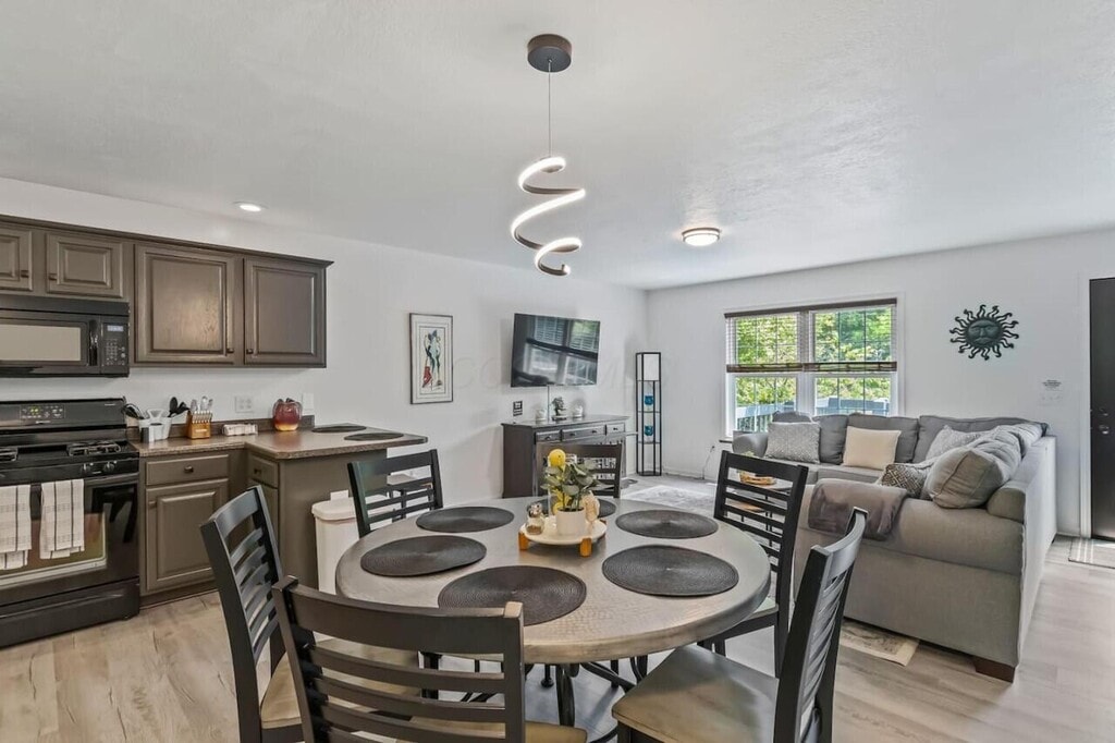 This fully furnished home offers the perfect blend of comfort and convenience in the peaceful Apple Valley community. Surrounded by tall trees and nature,it's an ideal spot for families or anyone needing a relaxing home away from home. Drive through the scenic wooded neighborhood with glimpses of Apple Valley Lake before arriving at a spacious lot with plenty of parking. Inside,an open-concept layout welcomes you with a cozy living room featuring a large sectional and smart TV,a roomy dining area with bar seating,and a fully equipped kitchen stocked with cookware and essentials for family meals. Down the hall are three bedrooms and two full bathrooms,including a primary suite with a private bath and additional TV. The lower level adds even more living space with a second family room,a half bath,and a bonus sleeping area with full-size bunk beds. A secondary entrance on this level provides easy access to the driveway,perfect for larger groups or families. Step outside to enjoy the quiet wooded backyard,complete with a fire pit and Adirondack chairs — great for relaxing evenings and making memories together. While Apple Valley amenities like the clubhouse,pool,and beach are reserved for residents,you're just a short drive from Mt. Vernon,Kenyon College,Mohican State Park,and Woodbury Wildlife Area. Lease Details: • Fully furnished and move-in ready • All utilities included • Six-month minimum lease • Background check required • Pet friendly (with fee) • Monthly cleaning required ($100-$200) Enjoy the peace and comfort of a wooded retreat with all the conveniences of home — ideal for families,relocations,or extended stays.
