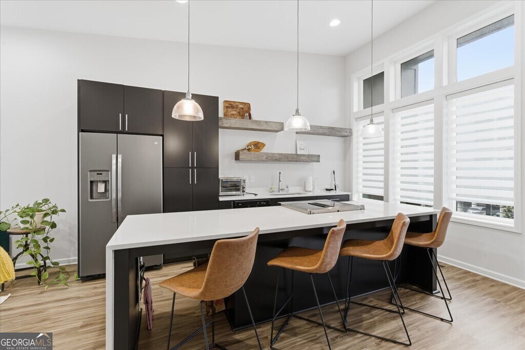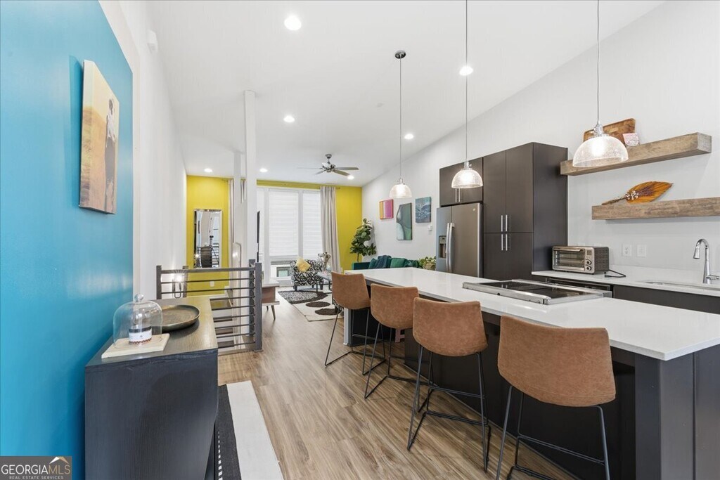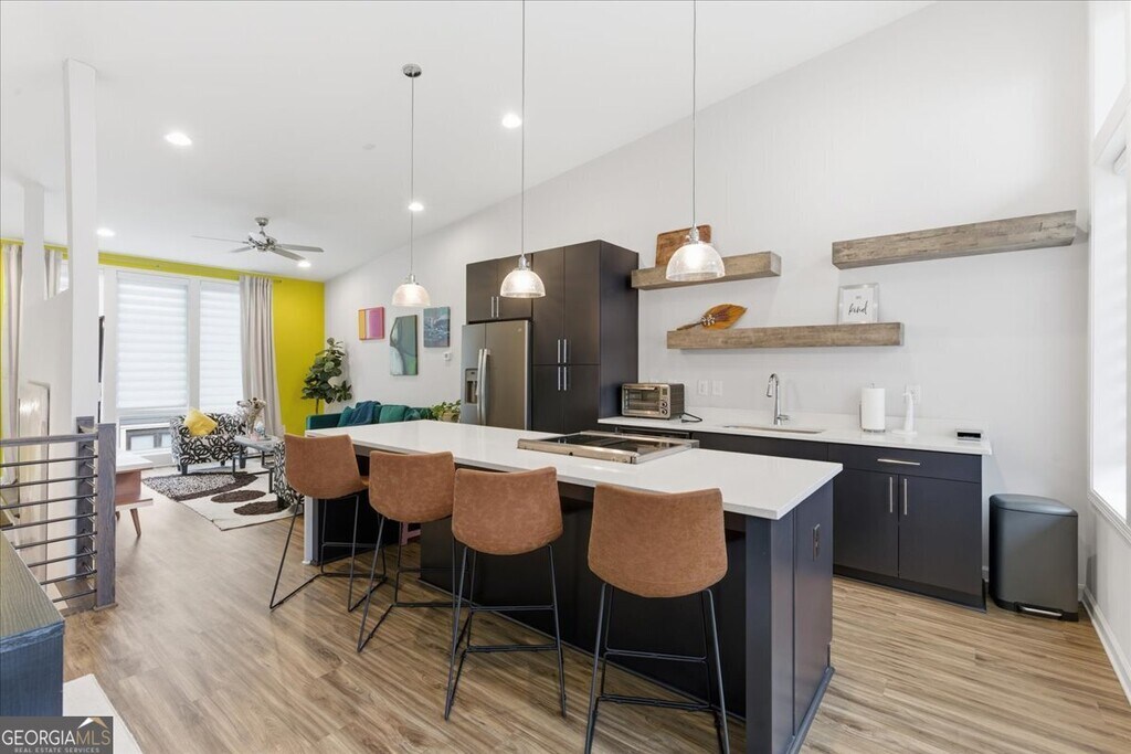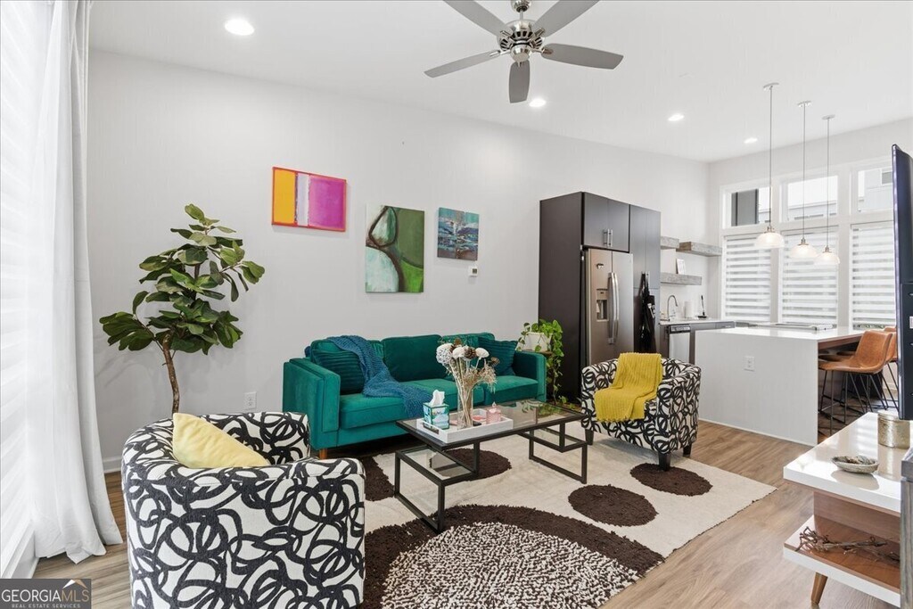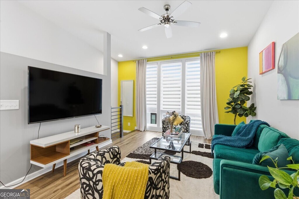 *December leasing special pricing!* Your beautifully designed, like-new townhome in the vibrant Old Fourth Ward awaits. This stunning 3-level residence combines contemporary style with thoughtful functionality. Upon entry, you're welcomed by a private flex space-ideal for a home office or gym-alongside a one-car garage with ample storage. The second level features two spacious bedrooms, two full bathrooms, and a convenient laundry area. Upstairs, the top floor boasts dramatic 14-foot ceilings, skyline views, and an open-concept living area perfect for entertaining. The sleek chef's kitchen includes a striking 10-foot waterfall-edge island, white quartz countertops, and modern floating shelves. Don't miss the opportunity to lease this exceptional home in one of Atlanta's most desirable neighborhoods. MLS ID 10594342