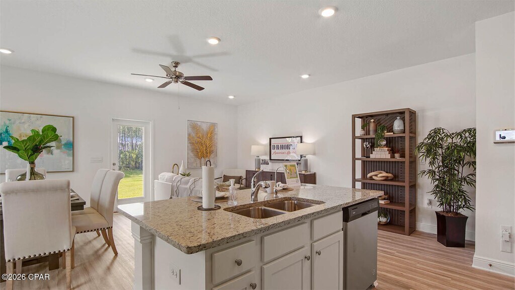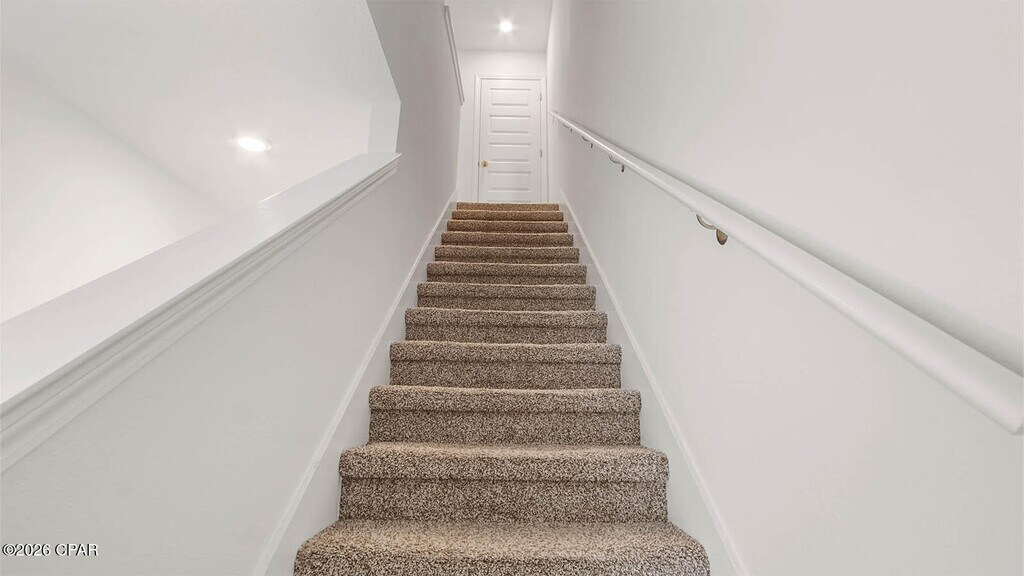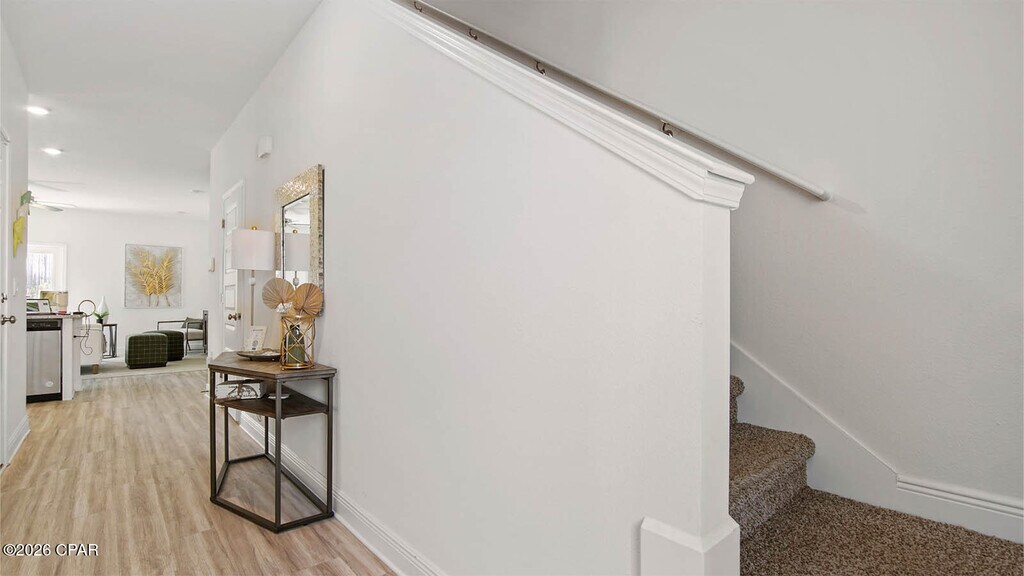 This home is only a little over one year old. Be the first tenant to call this place home!Bayside at Ward Creek is at the heart of Panama City Beach, accessible by sidewalk to Pier Park, Frank Brown Park, and the Conservation Park with the Gulf of Mexico less than 3 miles away. This community boosts a beautiful inground community pool for chilling on a nice, breezy summer day, and a playground for the children to spend all of their energy, so they don't spend all of yours! This townhome features the Palm Floor Plan with 3 bedrooms, 2.5 bathrooms, and a 1-car garage. The driveway is widened allowing 2 vehicles to fit side by side behind the single car garage. All bedrooms are located on the second floor, leaving plenty of space on the main level for entertaining and relaxing. Beautiful interior features in this unit include bright white cabinetry in Ivory, granite countertops, a center island with stainless-steel sink, and stainless kitchen appliances which include a stove, microwave, and dishwasher. The interior photos listed are of a furnished, exterior unit model home. The available unit does NOT come furnished and is an interior unit. The floorplan is the same, the window placement is different.