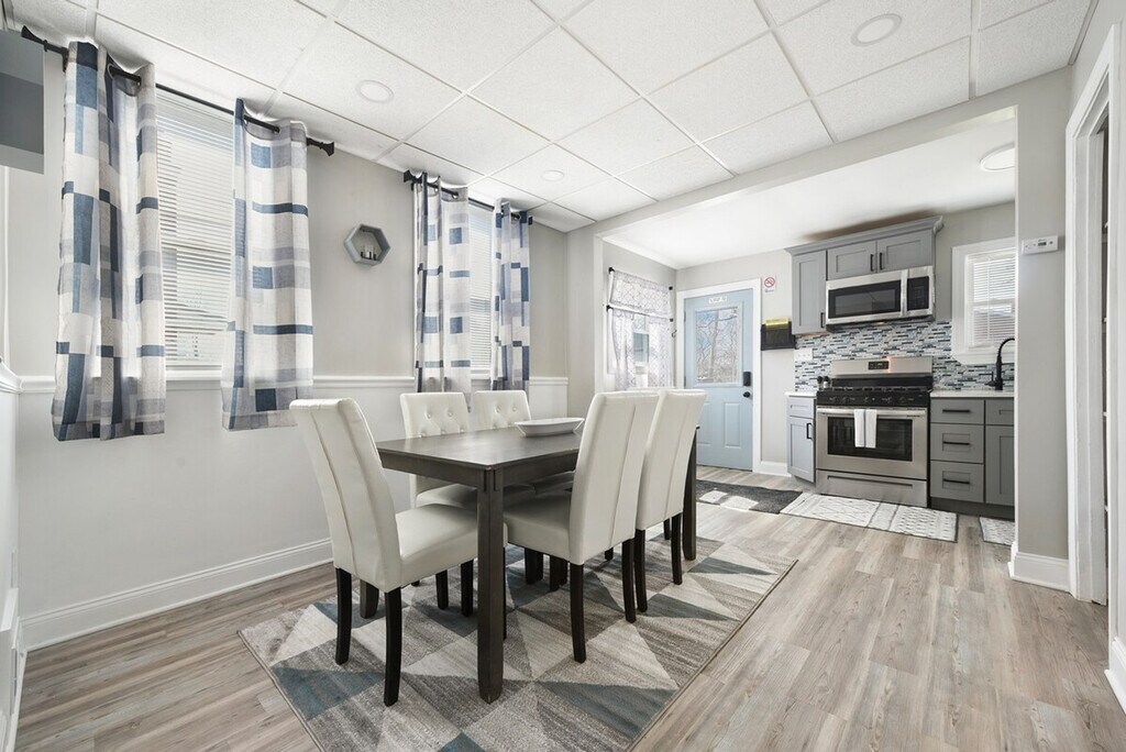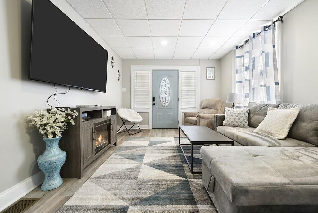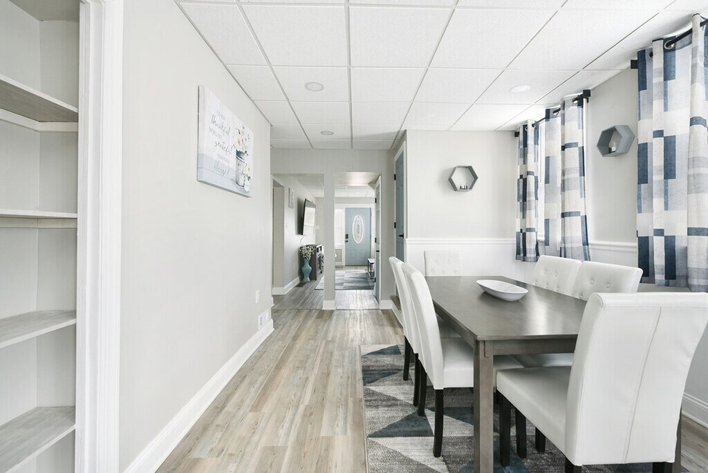 Meet your new Mount Washington getaway! This huge, newly renovated 5-bedroom home has everything you need to feel at home and enjoy a relaxing weekend or a peaceful and productive remote work week. This 3,200 sq ft home is perfect for large groups and accommodates up to 18 guests. There are two fully equipped kitchens, each including a gas stove, dishwasher, oven, Keurig coffee machine, and all the cookware and tableware required to prepare a gourmet meal. A kitchenette with a sink, mini-fridge, microwave, and cabinet storage space is located on the top floor. This house has three separate dining spaces, and two living rooms with cozy couches and a high-definition smart TV featuring Netflix, Hulu, Amazon Prime, and other services (note: you will have to log-in using your own account). Living room 1 also features an indoor electric fireplace. A washer and dryer are located in the basement for guest use at no additional cost. Guests have access to the patio and grassy backyard area, a balcony, and a newly furnished front porch. Parking is free for up to six vehicles in the lot in the back. Centrally located, this home is close and convenient to Duquesne Incline (upper station (3 min / 0.7 miles)), PGP Paints Arena (8 mins / 2.5 miles), Downtown (10 mins / 2.7 miles), PNC Park (10 mins / 4.1 miles), and Acrisure Stadium (11 mins / 3.8 miles). Other fantastic places to explore include Point State Park (9 mins / 4.3 miles), Rivers Casino (10 mins / 3.5 miles), Andy Warhol Museum (11 mins / 4.4 miles), National Aviary (12 mins / 4.1 miles), Carnegie Science Center (12 mins / 3.9 miles), Phipps Conservatory (17 mins / 5.3 miles), Pittsburgh Zoo and Aquarium (18 mins / 9.3 miles), Sandcastle Water Park (22 mins / 9.4 miles), and Kennywood Park (26 mins / 11 miles). Colleges/Universities within a 20 minute drive include Point Park University (9 mins / 2.5 miles), Duquesne University (9 mins / 2.4 miles), Carlow University (11 mins / 3.9 miles), University of Pittsburgh (14 mins / 4.5 miles), and Carnegie Mellon University (16 mins / 4.8 miles). Hospitals within a 20 minute drive include UPMC Magee-Womens Hospital (11 mins / 3.9 miles), UPMC Mercy (12 mins / 2.9 miles), UPMC Montefiore (14 mins / 4.4 miles), Allegheny General Hospital (14 mins / 4.5 miles), Western Pennsylvania Hospital (15 mins / 5.6 miles), Pittsburgh VA Medical Center (15 mins / 5.2 miles), West Penn Hospital (15 mins / 5.6 miles), Select Specialty Hospital (15 mins / 4.5 miles), UPMC Presbyterian (15 mins / 4.4 miles), and UPMC Children's Hospital ( 16 mins / 5.6 miles). The home includes eight real beds, but can accommodate up to 20 guests. Sleeping arrangements for the 15th-20th guests are the pull-out couches and/or two air mattresses. [SI]