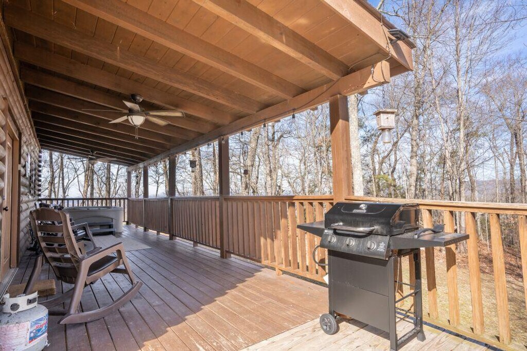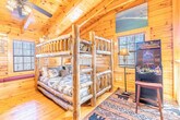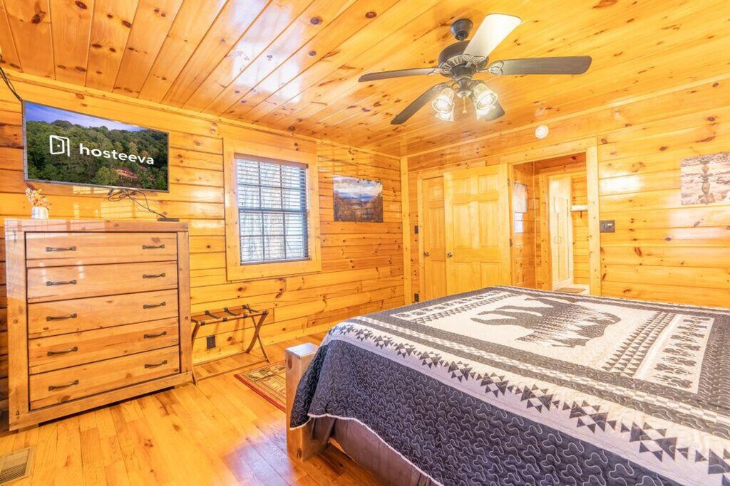 Bearway to Heaven cabin is a cozy and charming getaway nestled in the heart of nature. With its rustic design, the cabin offers a warm and inviting atmosphere perfect for relaxation and rejuvenation. The interior features wood walls, a comfortable living area with a stone fireplace, and a fully equipped kitchen with all the necessary amenities. Step outside to a spacious deck overlooking the lush forest and take in the breathtaking views while sipping your morning coffee. Whether you're looking for a peaceful escape or an adventure-filled trip, this cabin is the perfect place for you to experience the best of both worlds. This cabin boasts a private hot tub, air conditioning, a fire pit, a fireplace, and a game room. Enjoy modern conveniences like internet and Wi-Fi, video games, a deck patio, a grill/BBQ, and outdoor furniture, ensuring a comfortable and entertaining stay. Free parking space is available at the property, providing convenience for guests traveling by car. Explore local attractions such as downtown Pigeon Forge and Gatlinburg, Dollywood, Dolly's Splash Country, Dolly's Stampede, Gatlinburg Golf Course, Ober Gatlinburg, and the Smoky Mountain National Park, all within easy reach. The Queen bunk bed is located in the loft. You may need a 4-wheel drive vehicle during winter. Some mountain roads can be steep and winding, so drive cautiously and allow extra time for travel. Check-in is no earlier than 4:00 P.M. and check-out is no later than 10:00 A.M. Late check-outs will incur additional charges. This is a non-smoking cabin and any violation of the smoking policy will incur a $400.00 fine plus cleaning costs to remove smoke odors. No pets are allowed. At least one guest must be 25 years or older and proof of age will be required at check-in. Guests are financially responsible for any property damage during their stay. [SI]
