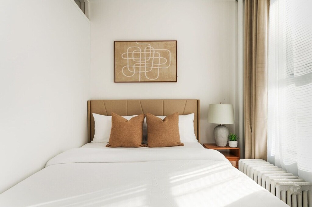 Welcome to your urban sanctuary in the heart of Hell's Kitchen. Indulge in the allure of New York City living with this exquisitely designed 2-bedroom, 1-bathroom apartment. This newly furnished apartment offers a warm and inviting space, perfect for business or leisure stays. Featuring a fully equipped kitchen, cozy queen-size beds with memory foam mattresses, and all essential linens and towels, it’s designed for comfort and convenience. Relax in the stylish living room with a comfortable sofa and a 50” Smart TV, and enjoy high-speed Wi-Fi with all utilities included. The secure building features an elevator and code-access doors, while AC and heating ensure year-round comfort. Step into a warm and inviting space where comfort meets convenience. This newly furnished 2-bedroom, 1-bathroom apartment is thoughtfully designed to make you feel at home, whether you're staying for a business trip or a fun visit in the city. The kitchen is fully equipped with kitchenware, utensils, and modern appliances—perfect for preparing home-cooked meals or quick snacks. Each bedroom features a cozy queen-size bed with a plush memory foam mattress, ensuring a restful night's sleep. Soft towels, linens, blankets, and pillows are provided, so you can settle in with ease. Unwind in the stylish living room, complete with a comfortable sofa and a 50” Smart TV, perfect for relaxing after a long day. High-speed Wi-Fi and all utilities are included, offering a seamless and stress-free experience. The building provides both security and convenience, featuring an elevator and secure code-access doors for peace of mind. Stay comfortable year-round with air conditioning for warm summer days and heating for cozy winter nights. Hell's Kitchen, located on the west side of Manhattan, is a neighborhood that exudes vibrancy, character, and urban charm. With its rich history and diverse community, Hell's Kitchen offers a unique and captivating atmosphere that captures the essence of New York City living. Strolling through the streets of Hell's Kitchen, you'll encounter a fusion of old and new, as historic brownstones coexist alongside sleek high-rises. The neighborhood is known for its bustling streets, lined with an eclectic mix of trendy restaurants, cozy cafes, and vibrant bars. From renowned dining establishments to hidden gem eateries, Hell's Kitchen is a culinary paradise that caters to every palate. New York City's heating season is until the end of May. Beginning around mid-April, window air conditioning will be installed in the apartment. You can request an earlier installation if needed. [SI]