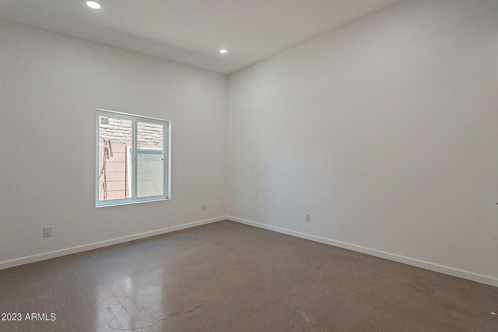 DIRECTIONS: 44th St just south of Oak Gated community, through the gate and head east to the farthest southeast corner. This is a unit like no other. Super cool vibe from the moment you enter. Polished Concrete floors showing off the aggregate. Open Kitchen with Butcher Block counters, Kitchen Aide Pro Style Gas Range, SS appliances. LED wafer ceiling lights, Living room boasts full length Exposed Aggregate wall, french doors with opening side lights, Bath has new tub, Carrera Porcelain tile surrounds, new vanities with glass and marble backsplashes, mirrors, fixtures, faucets and LED lighting. Both Bedrooms have vaulted ceilings with amazing storage above the closets, and yes, you could store a Kayak up there!! Professional ''Smooth Wall'' ceiling and wall finishes, new windows and blinds. Please contact Premier Business Investments at to schedule a showing. Total Month Cost: Rent/Surcharge/Admin/HVAC - $1,804.76 WATER/SEWER/TRASH included in the rent Tenant responsible for: SRP/Cox AVAILABLE: NOW Serious Inquiries Only. Lease Requirements - 12 month contract, references, and credit check. cat is OK dog under 25 lbs is OK
