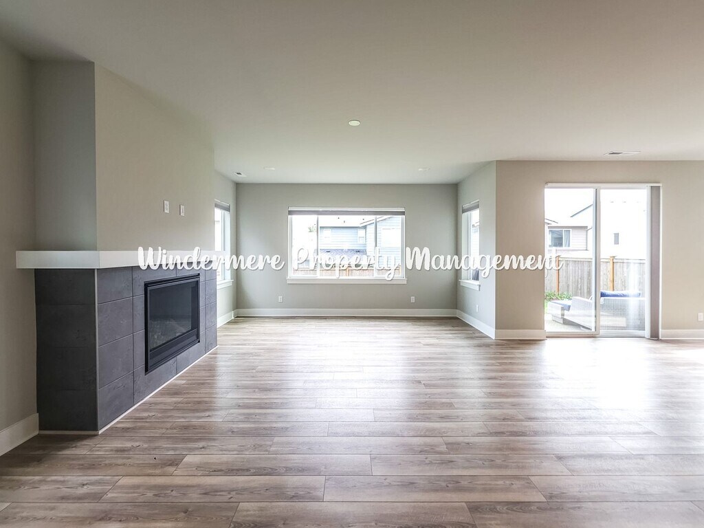 Welcome to McCormick Village! Discover this stunning and immaculately maintained home in Port Orchard, WA. This light and bright home features an open main floor design with luxury finishes throughout, including custom cabinetry, quartz countertops, stainless steel appliances and an elevated design throughout. Cozy up to the gas fireplace on those chilly PNW evenings or step out to your covered back patio for relaxation. The main level includes a bedroom and 3/4 bath with walk-in shower for added convenience, while an expansive loft upstairs offers flexible living space. The primary suite boasts a gorgeous en suite 5-piece bathroom complete with large soaking tub, double vanity and tiled in shower. Upper level also includes 3 additional rooms and laundry room with hook ups. Home features a spacious 2 car garage for ample parking and storage space. Conveniently located to highways, McCormick Village retail center and more, this home offers all one needs to have convenience, comfort, luxury and modern style. This one will not last long, contact us for a showing today! Tenant responsible for yard care, utilities, and must carry insurance. One dog allowed with additional deposit and owner approval. Apply at Crystal Bartlett