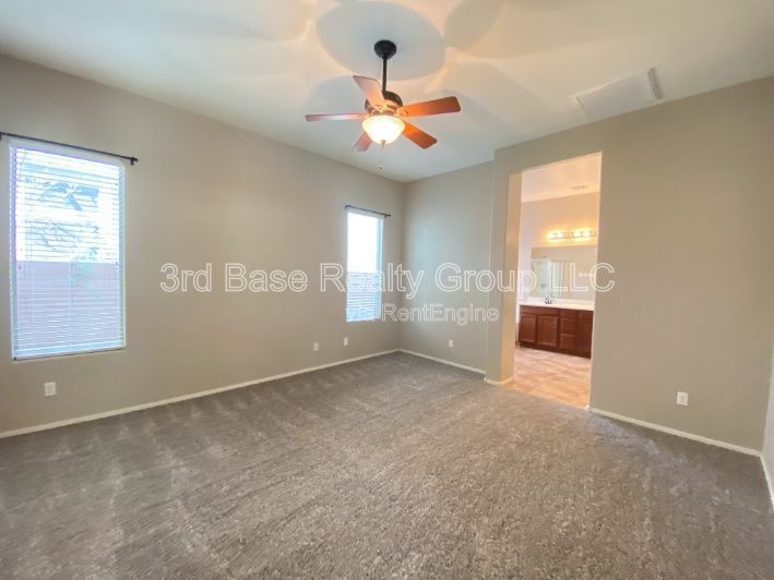 Available NOW- Amazing Main St District Single Story Home ! 4 BDR/2 BATHS with an open Living/ Dining and Family Room, beautiful kitchen with granite counters & upgraded staggered cabinets, island with breakfast bar. 9 foot ceilings, all tile floor. Enjoy the spacious Front Porch which has a Gorgeous view of Jackson Park. The Private Backyard has lots of pavers, covered Patio/breezeway, large pergola, & lush greenery. This is located within 2 blocks of Main St. Verrado Community offers heated Pools, restaurants, workout facility, Center on Main, Shopping, Golf Course, and trails, included in rent. By submitting your information on this page you consent to being contacted by the Property Manager and RentEngine via SMS, phone, or email.