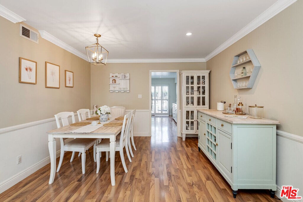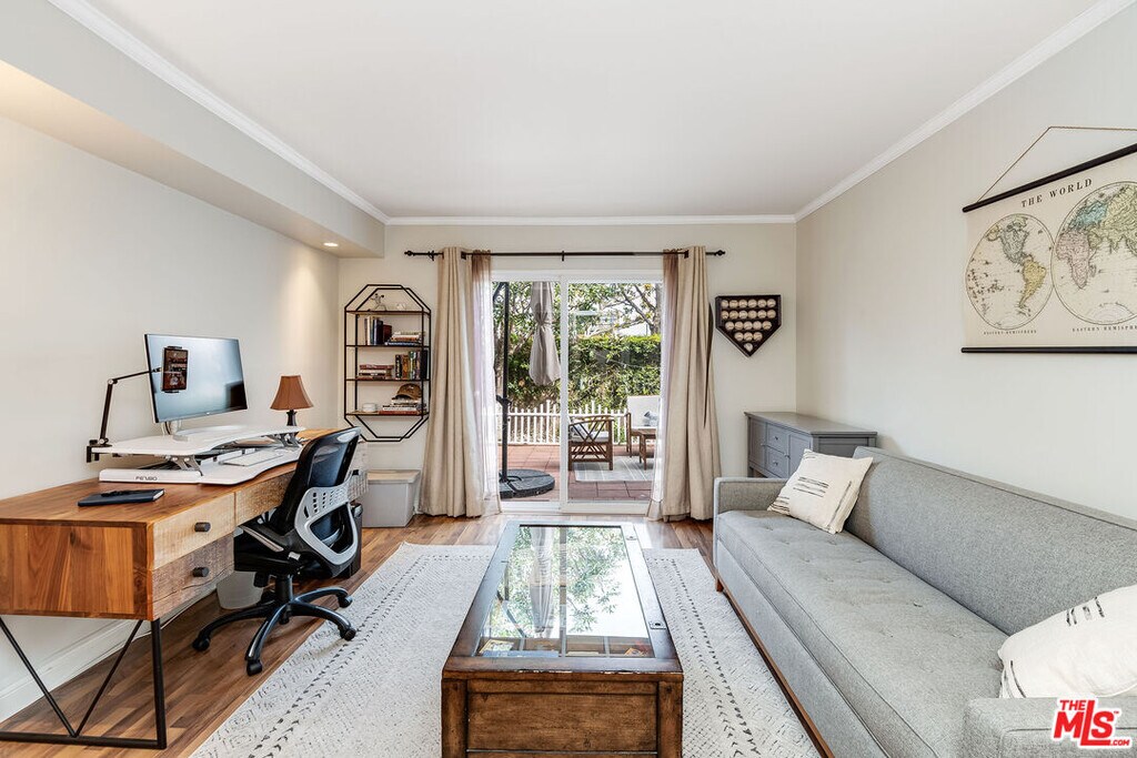 Located south of Ventura Blvd, this beautifully updated townhome in a boutique 4-unit complex offers the comfort of a single family home with privacy and style. The open layout features hardwood floors, plantation shutters, crown moldings, and recessed lighting throughout.The bright living room with a gas fireplace flows into the dining area. The modern kitchen features quartz countertops, stainless steel appliances, and custom cabinetry, with a breakfast nook that opens to a private patio for effortless indoor-outdoor dining.The first floor also offers a versatile bedroom, den, or office with direct patio access, plus a full-size washer and dryer. Upstairs, the primary suite features treetop views and a peaceful sitting area, while the third bedroom is great as a second bedroom or guest room.Just moments from the Sherman Oaks Galleria, trendy shops, and Ventura Blvd restaurants, with easy access to the Westside, this stylish home combines comfort, privacy, and a prime location. MLS# 25622499