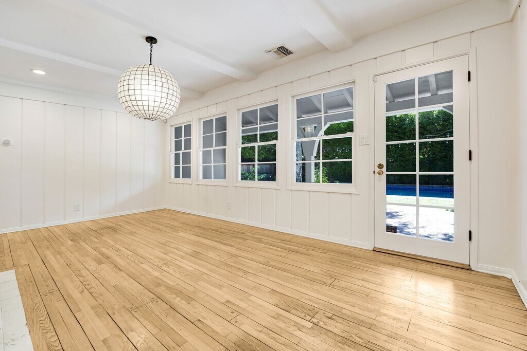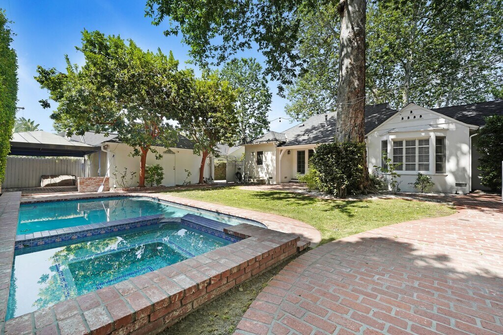 Country English residence sits on an expansive, flat 9,000 sq. ft. lot. Behind a white picket fence, and set back from the street, is a delightful storybook home with just under 1,800 sq. ft. of living space---well maintained and with many vintage details still intact! The large front yard features a lush landscape, an array of beautiful flowers, herbs and fruit trees (avocado, pomegranate, citrus, tangerine), and loads of privacy and shade that keeps the house cool in the summer. A bright and charming living room with beamed and vaulted ceilings, original peg and groove hardwood floors, installed surround sound, and a fireplace connects to a dedicated formal dining room with large windows to bring in tons of light. The master suite has views of the pool through a large bay window, an en-suite bathroom, and a walk-in closet while the second bedroom faces the front of the house and private side garden. The third room easily converts to a third bedroom or den/family room. The kitchen is equipped with all appliances, including washer and dryer in dedicated laundry area. Draped with romantic string lights, the large private backyard is complete with a flat grassy pad, herbs, large pool, spa and a cabana. Other amenities include: two-car garage, 240V outlet for electric car charging, parking for five, newly upgraded HVAC and electrical systems, walking distance to the weekly Studio City Farmers Market and restaurants on Ventura, and the Colfax Charter Elementary district. Pet friendly. Owner pays for weekly gardening, pool service, and $500 per water bill.
