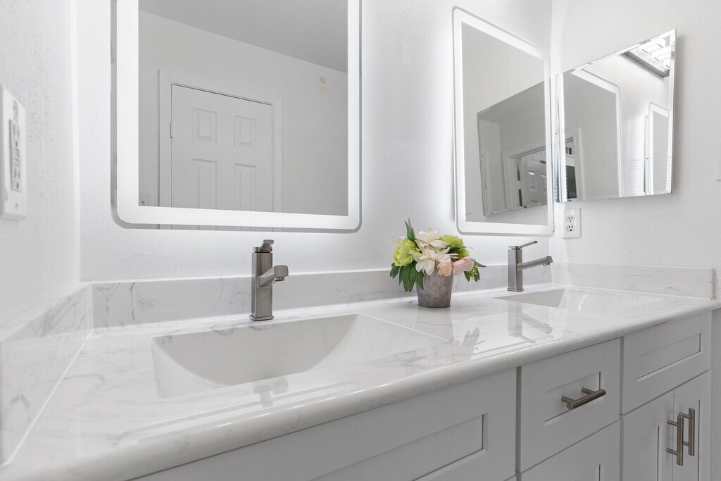 This absolutely gorgeous work of art has been completely remodeled! Hues of white and gray envelope you as soon as you enter this ultra modern condo! The owner spared no expense with granite counters,porcelain flooring in the living area and beautiful bathroom accessories. Both bathrooms are equipped with smart mirrors,super sleek faucets for both tub and sink and ceramic tile flooring. The a/c and hot water heater are new. Huntington Park is a completely gated community with a pool and tennis court. Assigned parking for each unit and additional parking is available for visitors. Some of the pictures have been virtually staged. MLS# 86373433