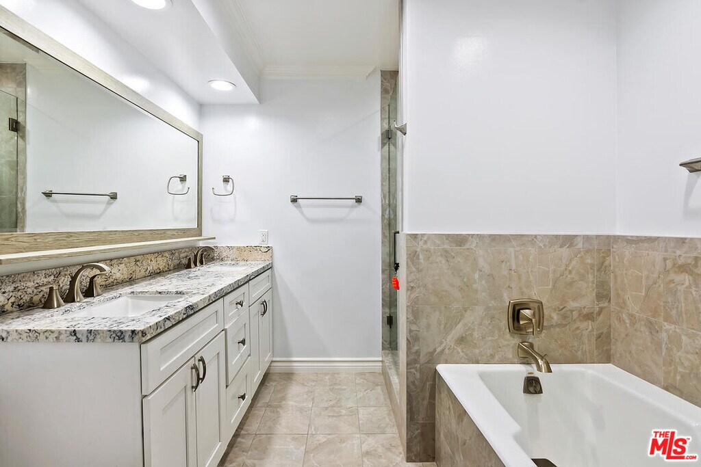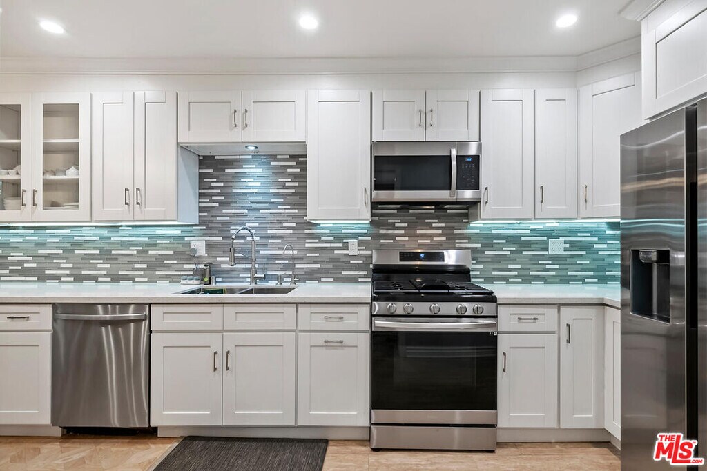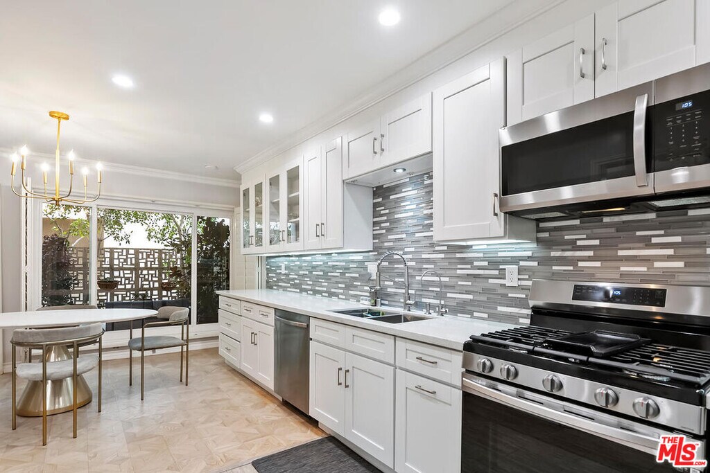 This is one of the largest one bedroom condos you will find! Recently remodeled throughout, enjoy the luxuries of life including a new high-end kitchen w/quartz countertops, a unique tile backsplash, stainless steel appliances, all within a mile of Toluca Lake Village! The bathroom features an extra large bathtub, and an updated shower with a frameless glass door and 8 inch rain head. The double vanity has slow close doors and drawers, and the brushed nickel fixtures add an elegant touch. Acknowledging it's history, this condo has hardwood parquet floors, and white plantation shutters. After a long day, enjoy the fresh air on the sizable patio of roughly 185 square feet, or make yourself a drink and hang out with friends at your personal wet bar. On the weekend, take a quick dip in the pool. To sweeten the deal, your HOA dues cover nearly all utilities including; electricity, water, trash, gas and basic cable. MLS# 25583167