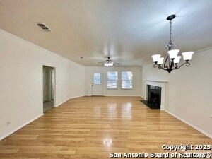 Welcome to this charming one-story rental home located in a gated community offering 3 bedrooms, 2 bathrooms, and a little over 1,600 sq ft. of comfortable living space. Inside, the open-concept layout highlights a spacious living room complete with a cozy fireplace, the perfect focal point for relaxing evenings or entertaining. The kitchen flows seamlessly into the dining area, creating a welcoming space for both quick weekday meals and weekend gatherings. The primary bedroom provides a private retreat with a walk-in closet and a bathroom that has both a soaking tub and a walk-in shower, while the additional bedrooms are generously sized, ideal for family, guests, or a home office. Step outside and you'll find an oversized patio deck overlooking the backyard-designed for outdoor enjoyment, whether that's hosting barbecues, catching up with friends, or simply soaking in the Texas evenings. This home's location offers excellent convenience with easy access to Loop 1604, where you will find plenty of food and entertainment. Not to mention, it is located in the North East Independent School District, where you'll find top-rate schools at all levels. You won't want to pass on this great opportunity!