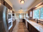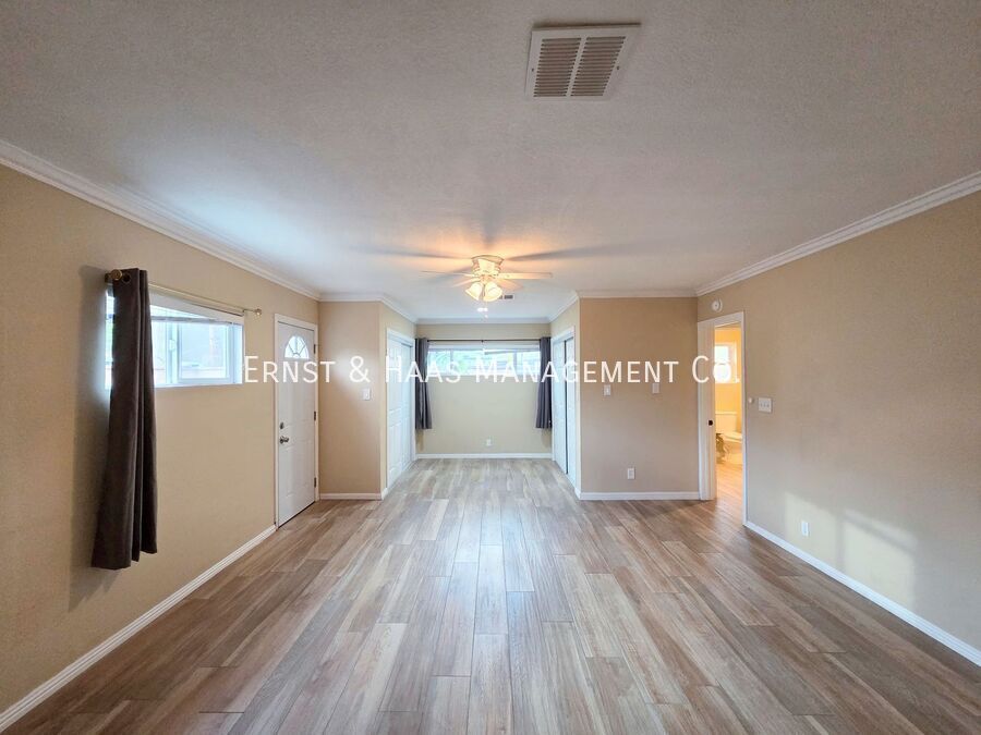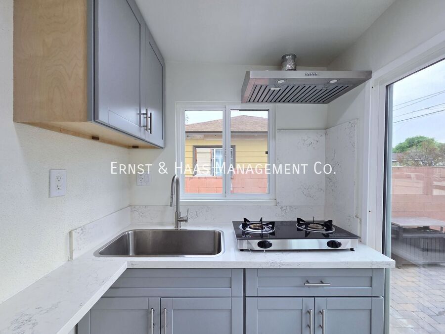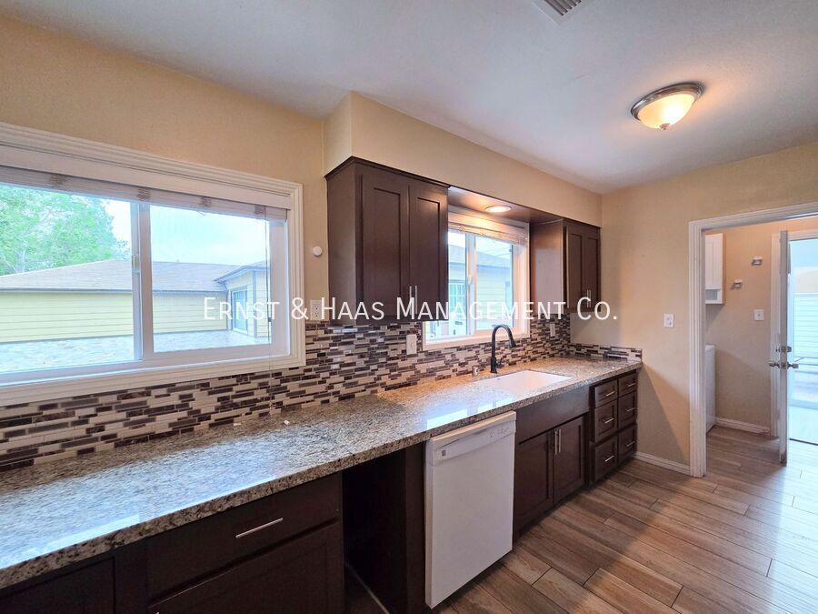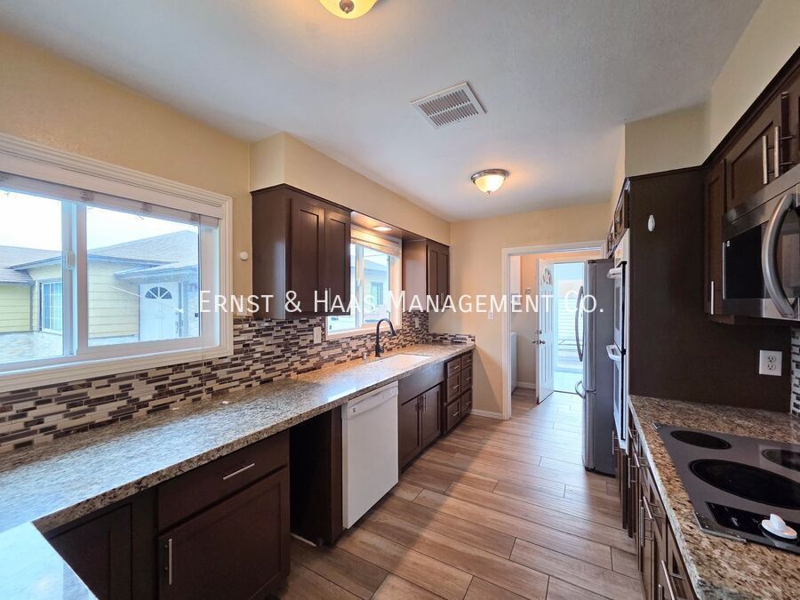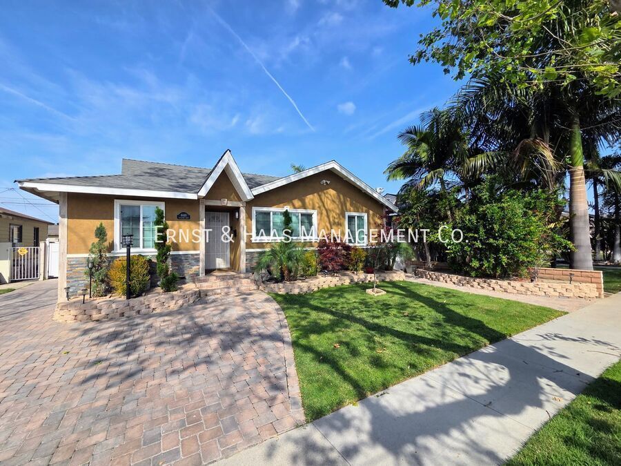 Beautifully remodeled and significantly expanded 4-bedroom home in a prime Lakewood neighborhood. Located at 4449 Shadeway Rd., this exceptional residence offers nearly 1,900 square feet of upgraded living space with a thoughtful floorplan, modern amenities, and energy-efficient features throughout. A long private driveway provides parking for up to four vehicles and includes an EV charging outlet, perfect for electric car owners. The exterior also features a gated rear patio, access to a large two-car garage, and a second private patio area with a raised garden bed. Inside, the welcoming entry opens to a formal dining area and a stunning remodeled kitchen designed for both everyday living and entertaining. The spacious kitchen boasts stone countertops, abundant cabinetry, and a full suite of appliances including a stove, dishwasher, microwave, and refrigerator. Just off the kitchen is a convenient service porch with additional storage and a side-by-side washer and dryer. A second warming kitchen offers added flexibility for meal prep, entertaining, or multi-generational living. The expansive main living room features laminate wood flooring, a skylight, and a striking stone hearth fireplace. A second living area provides the perfect space for a playroom, home office, media room, or extended family room. Three generously sized bedrooms are located toward the front of the home and include ceiling fans, wardrobe closets, and easy access to a beautifully updated hallway bathroom. Privately situated toward the rear of the home, the oversized primary suite offers dual wardrobe closets and direct access to a spacious private bath with a separate shower and water closet area. Additional upgrades include laminate flooring, recessed LED lighting, upgraded windows, and central air conditioning throughout. A 24-panel solar power system helps dramatically reduce electricity costs, saving hundreds of dollars per month in utility expenses. This is a rare opportunity to lease a spacious, upgraded home in one of Lakewood’s most desirable neighborhoods, close to parks, schools, shopping, and dining. For more information on this or any other available property, please contact Ernst & Haas Management at , or visit us online at