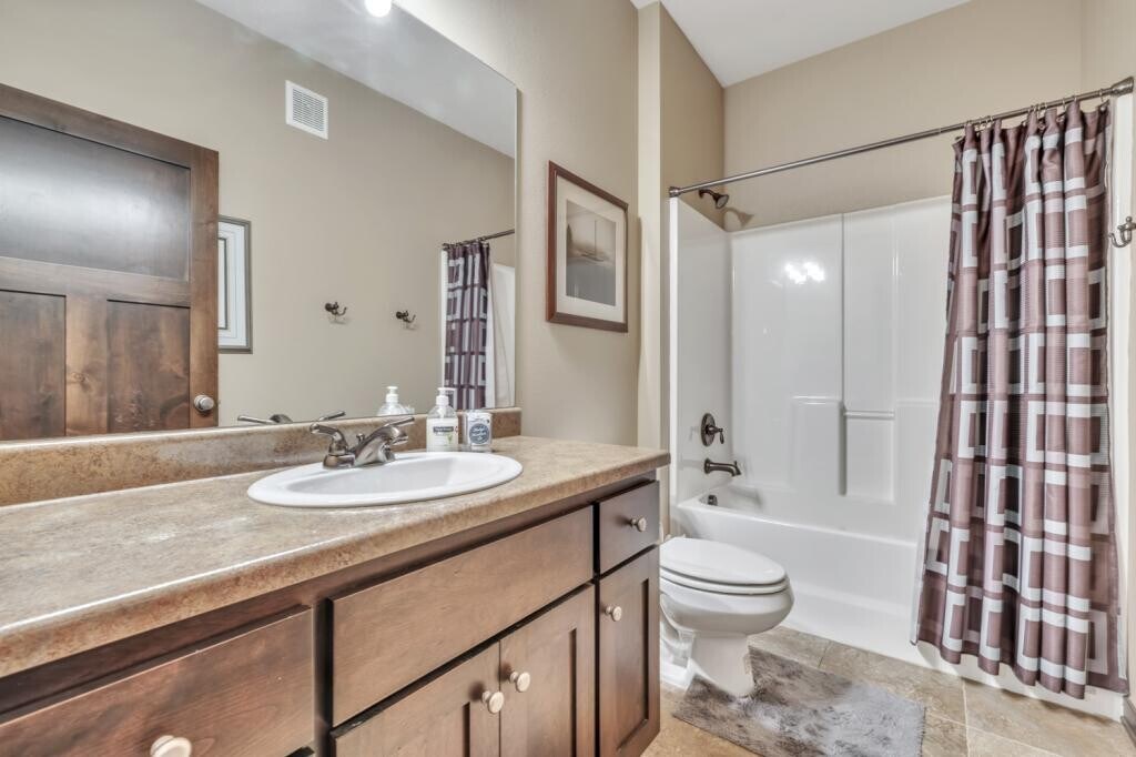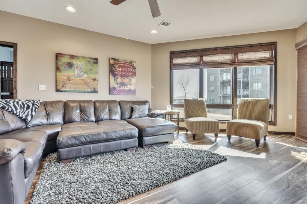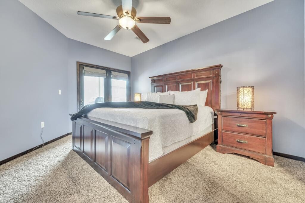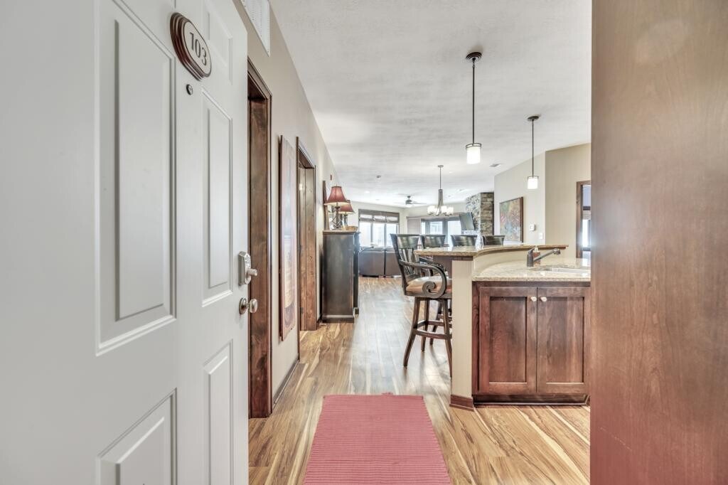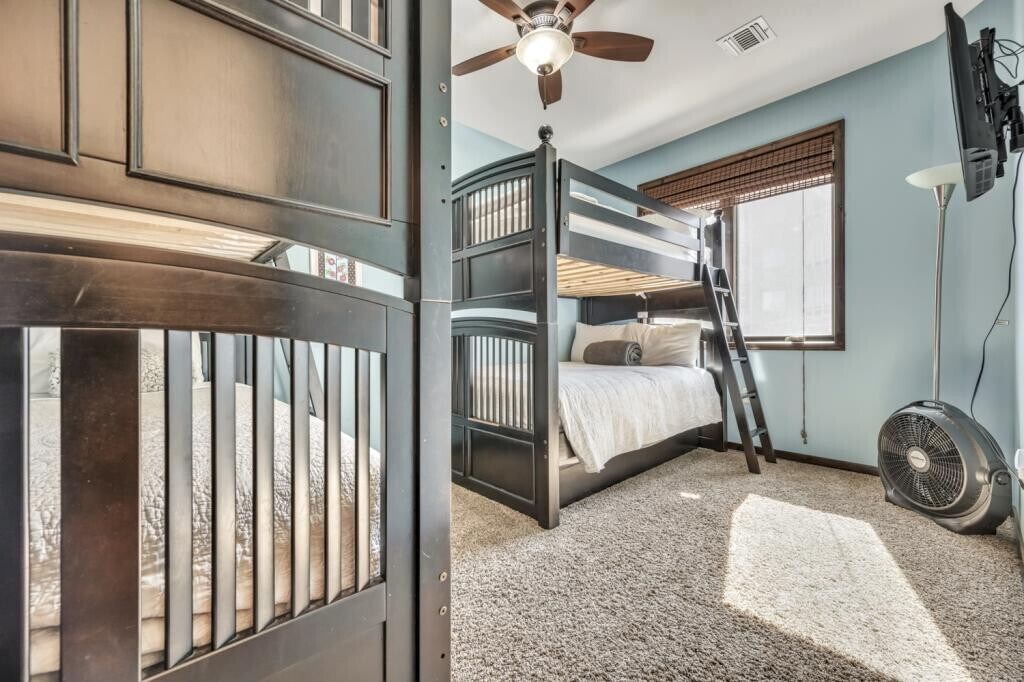 Bedding Summary: Master bedroom: King bed Guest bedroom 2: Full over full bunk bed; Twin over Twin bunk bed Guest bedroom 3: King bed This poolside unit is 3-bedroom 2 bath condo sleeps 10, with East Lake (and pool side) views from patio. Your home away from home offers full size kitchen appliances, small appliances such as a toaster, blender, and coffee maker (coffee not furnished) and one cup Keurig (pods not furnished) are available for your use. Breakfast bar with 4 stools on the kitchen island and the dining table seats four. This is a main level condo, so you are steps from the outdoor pool, you have plenty of room for yard games and to let the kids run around. Spacious private deck with an outdoor table that seat six and a gas grill. Living room offers lots of light from the high windows, leather furniture, gas fireplace, wireless internet and is open to the kitchen and dining areas. Master bedroom offers a king size bed with full on suite with separate shower, dual vanity and walk in closet. This property is professional hosted by Okoboji Property Management.