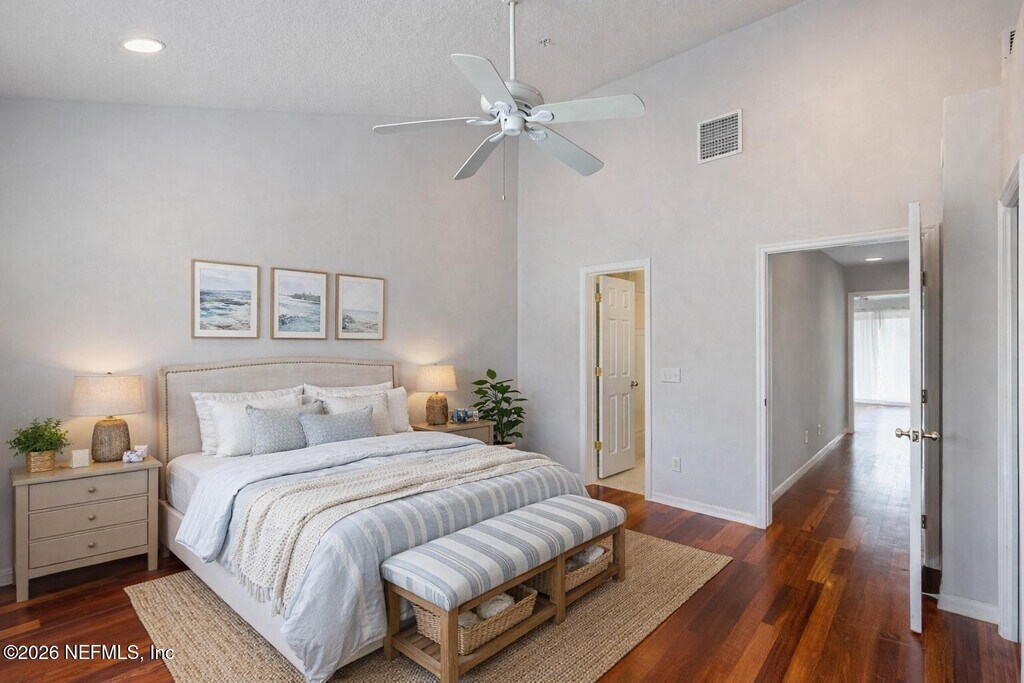 Nestled in the vibrant heart of Jacksonville Beach,this coastal townhouse boasts an unbeatable location. Enjoy the convenience of walking or biking to the beach,dining,shopping,and night life just minutes away. This multi-level gem features 2 bedrooms and 2.5 baths,each bedroom has its own bathroom. This home offers an abundance of natural light and a breezy,open-air atmosphere,thanks to its high ceilings. The home showcases top-notch construction with concrete block and stucco,complemented by elegant Brazilian cherry hardwood floors throughout. Additional highlights include a one-car garage,a private fenced backyard,and a full-size washer and dryer. Tenants are responsible for maintaining the backyard. MLS# 2124716