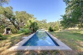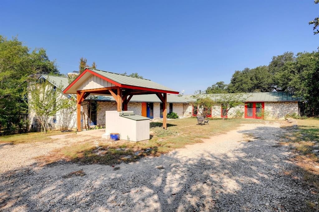 Amazing Blanco waterfront property available for lease, ideally for a 6 month term. Situated on almost 10 acres, with a home, spacious decks and patios, a pool, and over 375 ft. of Blanco Riverfront access, this property offers a great space to relax. The cozy home has two bedroom, one very large with space for multiple beds or a multipurpose room. The kitchen is light and bright and has a seating area nearby, as well as a full dining space in the sunken library area. This home is full of character and charm, with an antique claw-foot tub, Saltillo tile, skylights, and a screened porch with swings. Grand oaks cover the back yard and the pool is an amazing space to cool off or swim laps. Drive or walk down the hill to the river and take a cool dip! The workshop will not be included in the lease.
