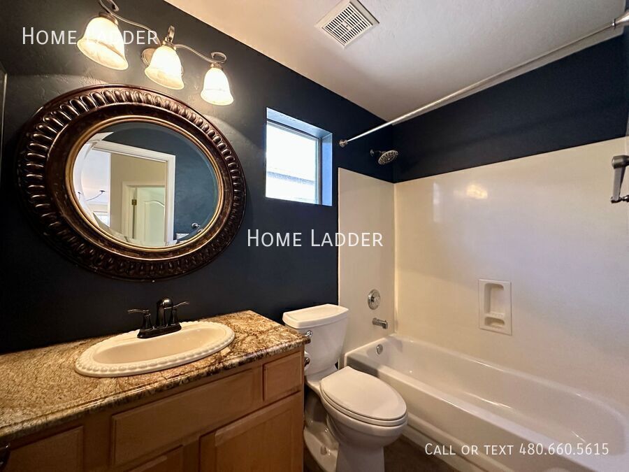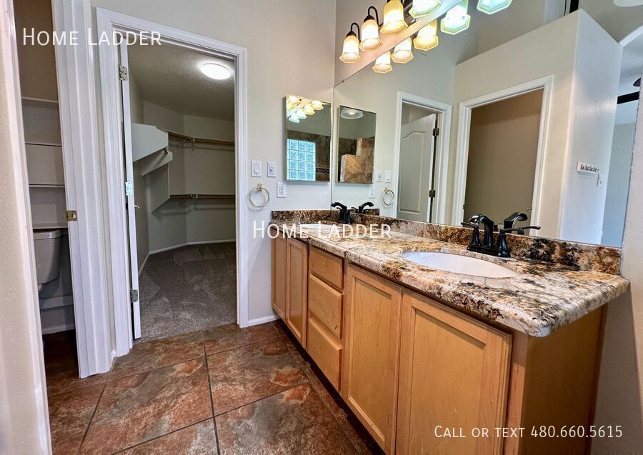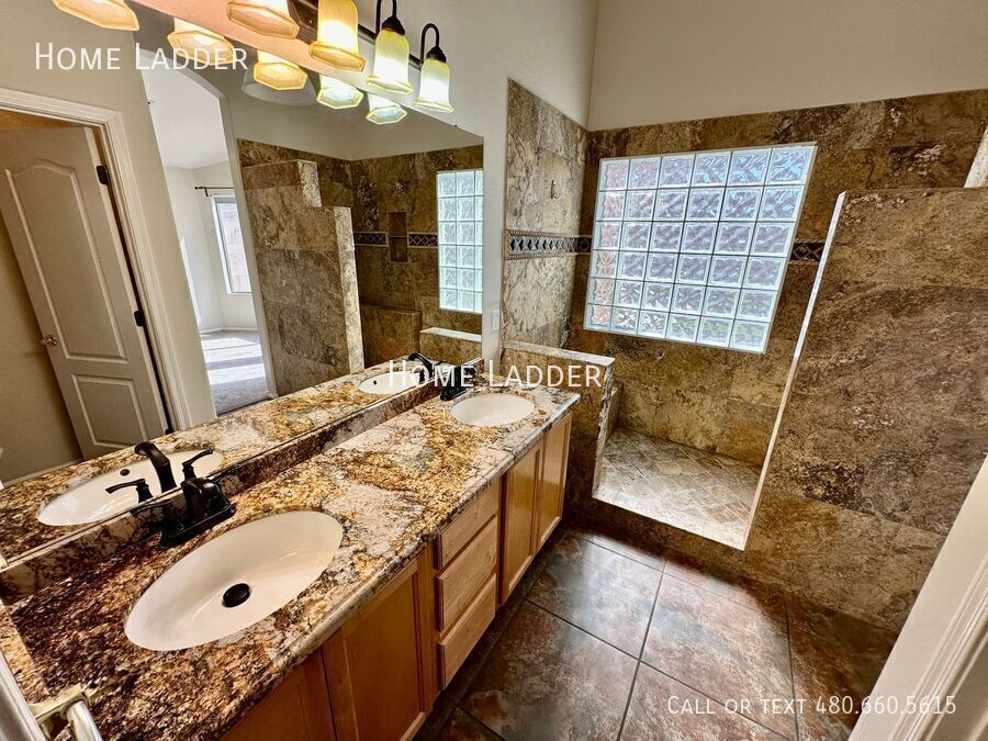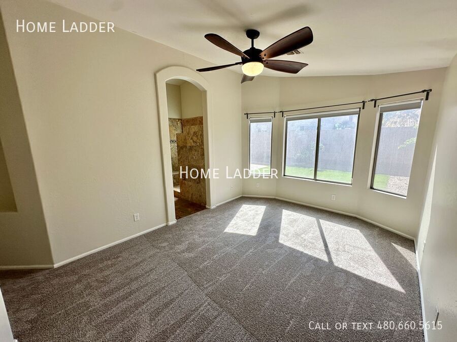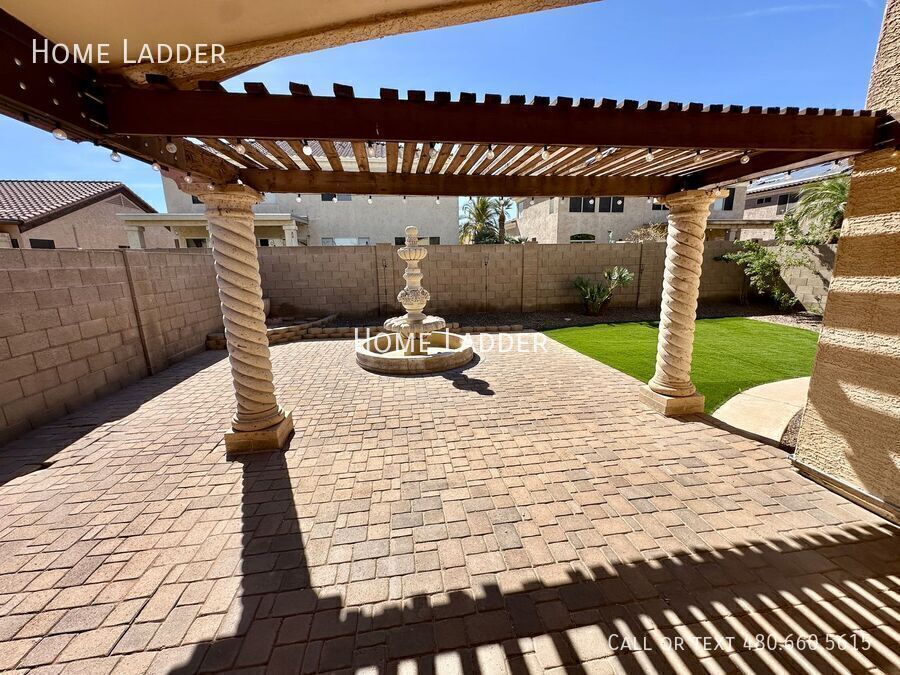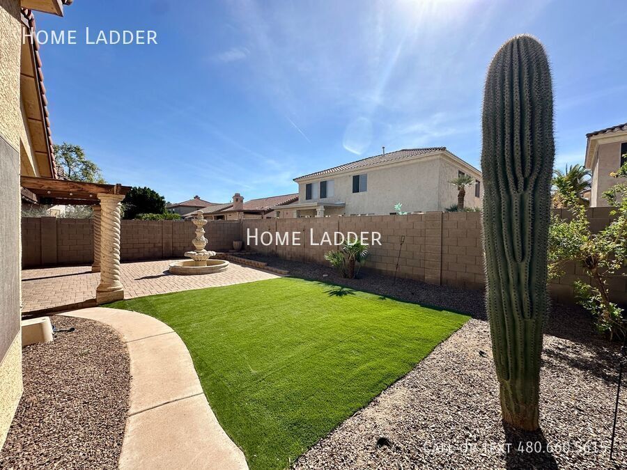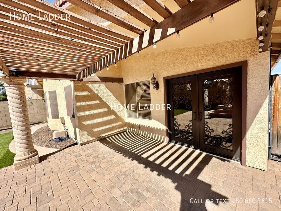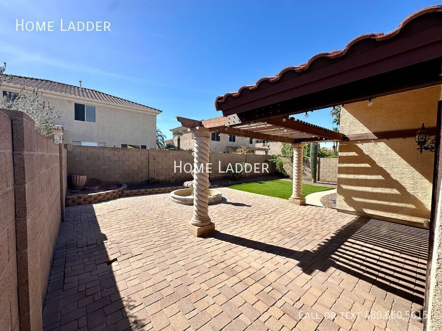 Welcome to this stunning 3-bedroom, 2-bathroom single level home in the heart of Gilbert! From the moment you arrive, you will appreciate the custom iron and glass doors at both the front entrance and back patio, creating beautiful curb appeal and a dramatic first impression. Inside, the open floor plan showcases vaulted ceilings, a skylight, and a spacious great room filled with natural light, perfect for relaxing or entertaining. The beautifully upgraded kitchen features granite countertops, stainless steel appliances, a stylish stone backsplash, and a bright bay window breakfast nook. Granite countertops continue in both bathrooms for a clean, cohesive feel throughout the home. Enjoy brand new carpet, fresh interior paint, and thoughtfully upgraded hardware and light fixtures throughout that complement the elegant iron door accents. The spacious primary bedroom includes a large bay window and an inviting en suite bath with dual sinks, a custom walk-in shower with a heat lamp, and a generous walk in closet. A designated laundry room with washer and dryer included adds everyday convenience. Step outside to your private backyard oasis featuring an extended paver patio, low maintenance artificial grass, and a stunning oversized fountain that creates a peaceful retreat. The home also includes an extended 3-car driveway, side gate, and RV gate with covered side yard, ideal for extra storage, a boat, or recreational vehicles. Conveniently located just minutes from shopping, dining, entertainment, and vibrant Downtown Gilbert, this home offers comfort, style, and convenience in one of Gilbert’s most desirable areas. All Home Ladder residents are enrolled in the Resident Benefits Package (RBP) for $50/month, which includes renters insurance, credit building to help boost your credit score with timely rent payments, $1M Identity Protection, HVAC air filter delivery, our best-in-class resident rewards program, and much more! More details upon application. Additional monthly fees: $9 admin, $35 pet rent/pet. This property qualifies for our security deposit alternative—move in with less upfront cost! One-time fees: $49 application fee per adult, $149 pet application per pet, $195 administration, and a security deposit equal to one month’s rent. 12-18 month minimum lease term. If moving in between 7/1 and 01/31, the lease term shall be 18 months. If moving in between 2/1 and 6/30, the lease term shall be 12 months. Lease must commence within 21 days of application approval. After approval, security deposit must be delivered to our office by noon on the next business day. The lease must start Monday-Thursday and not on any federal/state holidays. Dryer Washer