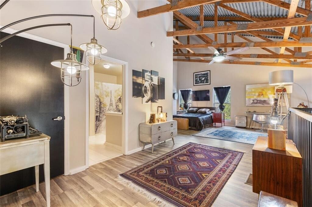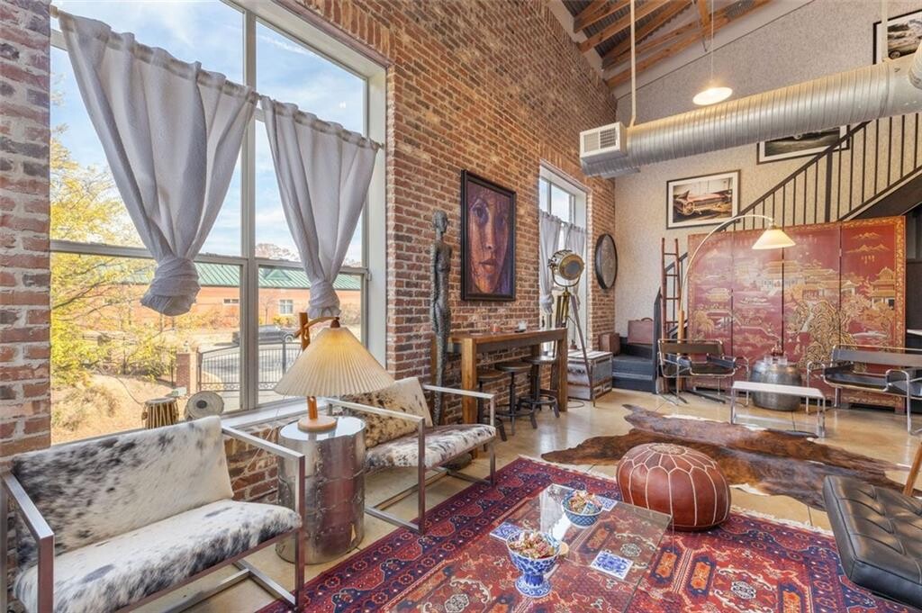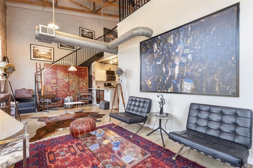 Discover vibrant luxury in this furnished industrial loft near Marietta Square. This 2-bedroom,2.5-bathroom space combines nostalgic charm with modern urban style,ideal for those who appreciate the finer things. Crafted by a classic film enthusiast,the loft features an open concept living area with industrial chic furnishings,exposed brick walls,high ceilings,and large windows that fill the space with natural light. The gourmet kitchen boasts stainless steel appliances and sleek countertops,perfect for culinary adventures. Bedrooms offer peaceful retreats with vintage movie memorabilia. The main bedroom includes a spacious lounge area and ample storage. Located near Marietta Square,enjoy easy access to dining,shopping,and entertainment. This loft's cinematic charm and prime location make it a must-see. Schedule a private showing today!