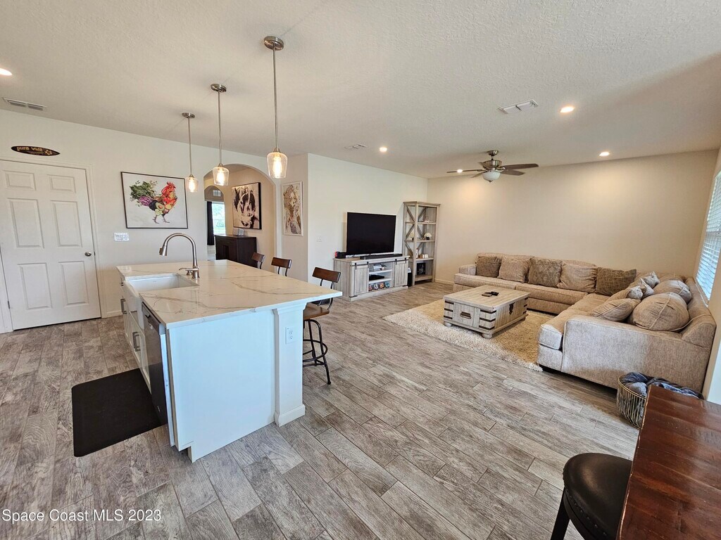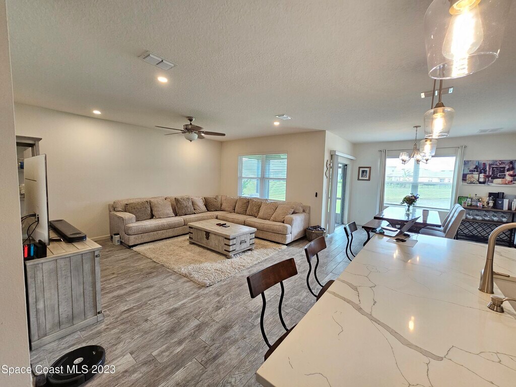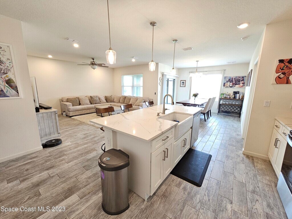 This gorgeous home is conveniently located near I95 and 528,just off 520. Close to anything you could need. Upgraded the kitchen and bathrooms with beautiful quartz countertops and white shaker cabinets. The master bedroom has a walk in closet and the bathroom has double sinks and tiled shower. The laundry room is inside and the appliances are included. The kitchen also has a large island and SS appliances overlooking the living and dining area. The porch has been screened in and has a Smart TV for added enjoyment as you look over the community lake from your own space. Large back yard,2 car garage,and Smart Home Technology. One mature pet will be considered on a case by base basis with additional fees. Home is occupied through August.