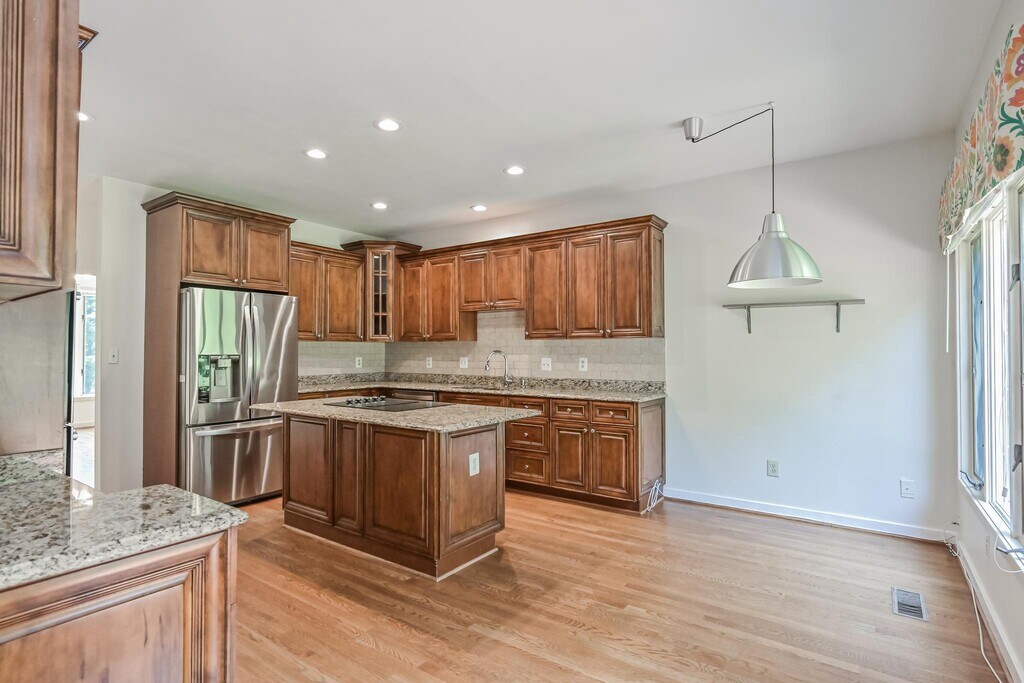 Nestled on a serene and partially fenced two-acre lot, this spacious contemporary residence offers a harmonious blend of modern design, natural light, and timeless finishes. The inviting double-door foyer opens to expansive, light-filled living spaces, creating an effortless flow throughout the main level. Rich hardwood floors enhance the elegant interiors, leading to a beautifully remodeled kitchen featuring stainless steel appliances, granite countertops, custom cherry cabinetry, and a center island with an adjoining breakfast area. A wall of windows and glass French doors bathe the family room in natural light and provide seamless access to the new rear deck. A striking double-sided fireplace connects the family room and formal living room, while the formal dining room enjoys views of the landscaped front grounds. Completing the main level are a remodeled powder room, private office/library, and convenient laundry room. The upper level is anchored by a sophisticated primary suite with vaulted ceilings, a cozy fireplace, walk-in closet, and a fully renovated spa-inspired bath. The luxurious bath showcases dual vanities with quartz counters, marble-style tile, a vessel soaking tub, a walk-in shower, and a private water closet. Bedroom 2 offers a new en-suite bath, while Bedrooms 3 & 4 share an updated buddy bath. The walkout lower level extends the home’s living and entertaining space, featuring new hardwood-style LVP flooring, a large recreation and game area, Bedroom 5, and a full bath. A bright Solarium/Sunroom and generous storage area add versatility and comfort. Outdoors, the new deck overlooks a private, tree-lined backyard with ample space for recreation and relaxation. Additional storage and parking are provided by the spacious three-car garage. This property offers the perfect balance of privacy and convenience, moments from scenic parks, equestrian trails, and the charming village center with its boutiques and dining. Great Falls is celebrated for its natural beauty, and close-knit community. Langley High School, Cooper Middle School, Great Falls Elementary School. Tenant to pay all utilities. All lawn and yard maintenance is included in rent. Security Deposit is equal to first month’s rent. Repair deductible is $200 per incident. Pets are case by case. Call for more information, floor plan, application, or private showing.