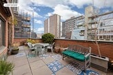 Prime Chelsea Penthouse with Private Terrace and Working Fireplace.Boasting a spacious terrace and historic views of Chelsea, this pristine 3-bedroom, 2-bathroom duplex penthouse is a blend of modern luxury and classic city design. Features of the home include beautiful hardwood floors, oversized windows with northern and southern exposure, a lovely wood-burning fireplace, exposed red-brick walls, split-system A/C, and an in-unit washer/dryer.On the lower level of the home, a functional entryway adorned with a large coat closet leads into an expansive living and dining with direct access to a large south-facing terrace. The living space is anchored by an incredible fireplace with a stone tile surround, while the dining area leads into a gut-renovated kitchen equipped with a convenient pass-through, sleek marble countertops and backsplashes, custom cabinets, and a suite of high-end stainless steel appliances. The 34-ft long terrace is perfect for alfresco dining, sun lounging, and urban gardening.All three bedrooms sit on the upper level of the home. The primary bedroom has a walk-in closet, an additional reach-in closet, a private balcony with views to Hudson Yards, and a full en-suite bathroom. The second and third bedrooms have large closets and easy access to a second full bathroom. Finishing the home is a windowed study/home office area that overlooks the living space below.Chatham in Chelsea is a quintessential condo in one of the most popular neighborhoods in the city. The building has a live-in super, landscaped roof deck, video intercom system and a central laundry room. It is moments from trendy restaurants, bars, cafes, art galleries, and shops. The High Line, Little Island, Chelsea Market, and the Meatpacking District are all close by. Nearby subway lines include the 1/C/E. Pets are welcome.$20 application feeFirst months rent due at lease signingOne month security due at lease signing