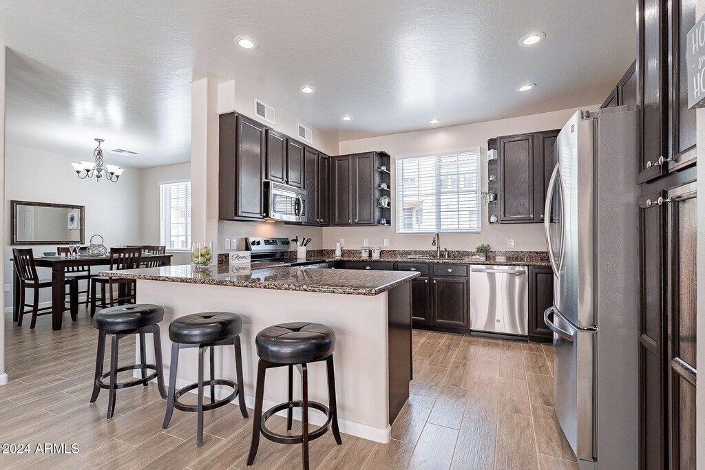 Beautifully remodeled 3 bed,2.5 bath home,close to Kyrene schools! New in 2024: dual pane windows,blinds,14 SEER AC unit w/programmable t-stat,plank tile floors,carpet,paint & ceiling fans,plus inside laundry (units included). The amazing kitchen features granite counters,stainless range,dishwasher,microwave & refrigerator,canned LED lighting,plus a breakfast bar. The large master suite has a walk-in classy closet,granite counters,dual sinks,separate shower/tub & a new toilet. The secondary bathroom also has granite counters & a new toilet. The low maintenance backyard has mountain views & plenty of room to enjoy the outdoors. You can walk to the hiking trails from the property! Come take a look today! This is a non-smoking and no pets property,available March 29th.