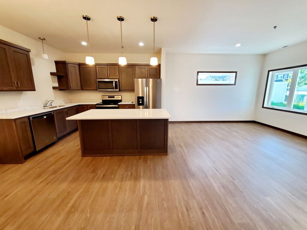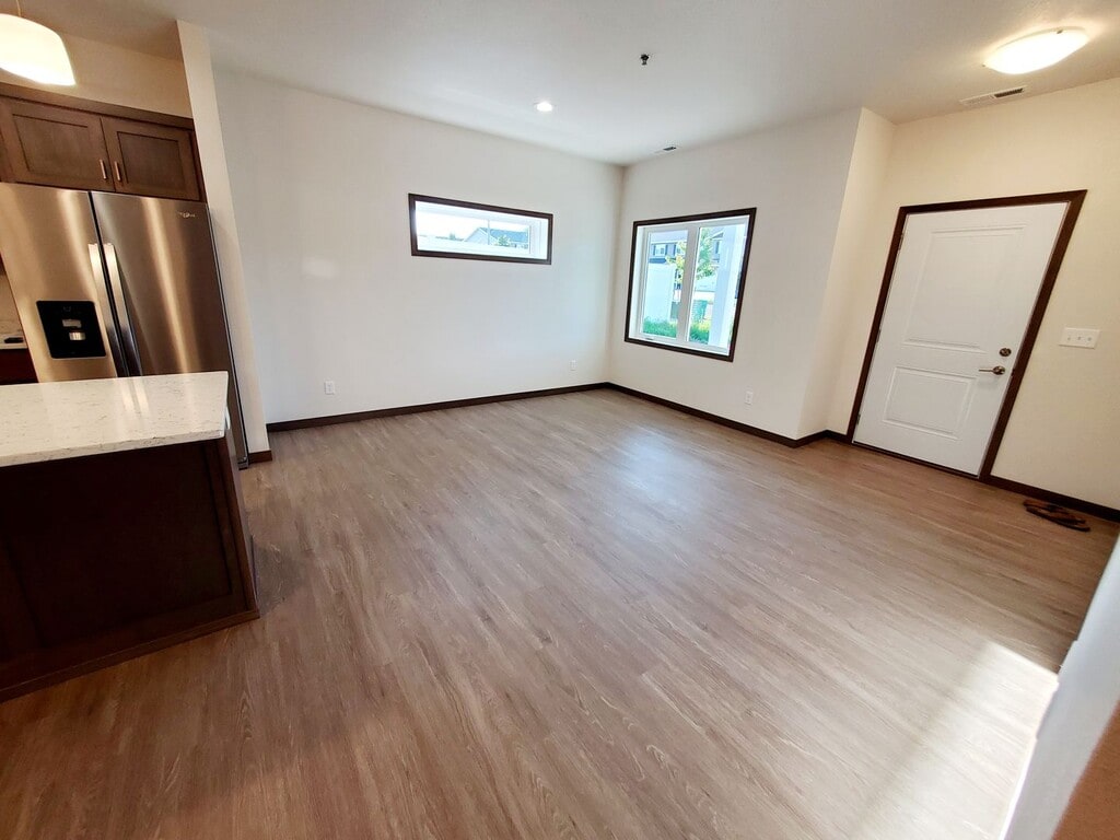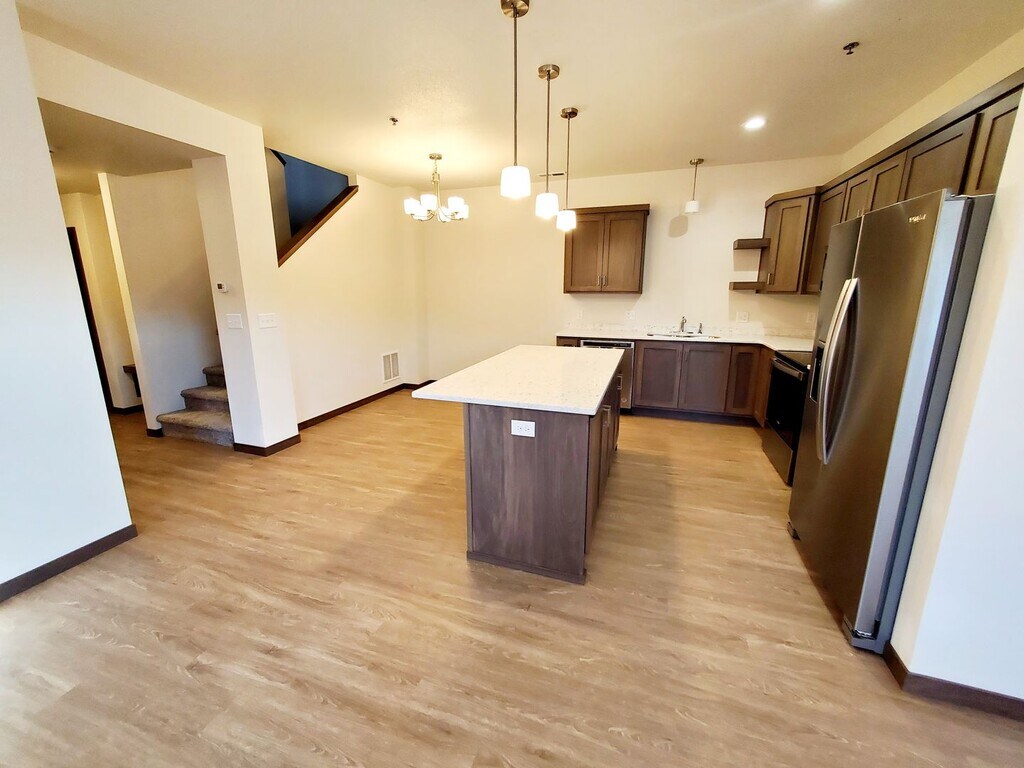 An almost new spacious two-story townhome awaits you! Can't beat this price for these homes new to the market! This interior development middle unit townhome has over 1650 square feet, 3 bedrooms, and 2.5 bathrooms. As you walk in you will notice the 9-foot ceilings on the main level! The upstairs has an airy bonus room that can be transformed into an office, second living room, or play room. Enjoy all the modern details to include matching QUARTZ countertops in the kitchen and all the bathrooms, large island with outlets, custom SOFT CLOSE cabinetry, and brand-new STAINLESS STEEL appliances. Easy to clean luxury vinyl plank flooring is throughout the house with carpet on the stairs and in the bedrooms on the second level. The bedrooms are all located on the second level with the master suite featuring a walk-in closet and master bathroom. A hall tree with bench is the perfect detail to store your outdoor garments and shoes as you enter through the 2-stall HEATED garage with floor drain. A new washer and dryer is provided on the main level. Central air conditioning and heat is throughout. This is truly a CUSTOM HOME! Residents are responsible for all utilities except water. Snow removal on private streets and lawn care is included. Come and see what maintenance free living looks like. Schools Districts: Sunrise Elementary Simle Middle School Legacy High School Application Fee: $40 Security Deposit: $2,200 We allow up to 2 pets. Deposit for one pet is $1,200. Deposit for two pets is $1,800 No dangerous breeds of dogs. Deposits are fully refundable with no damage to the home.