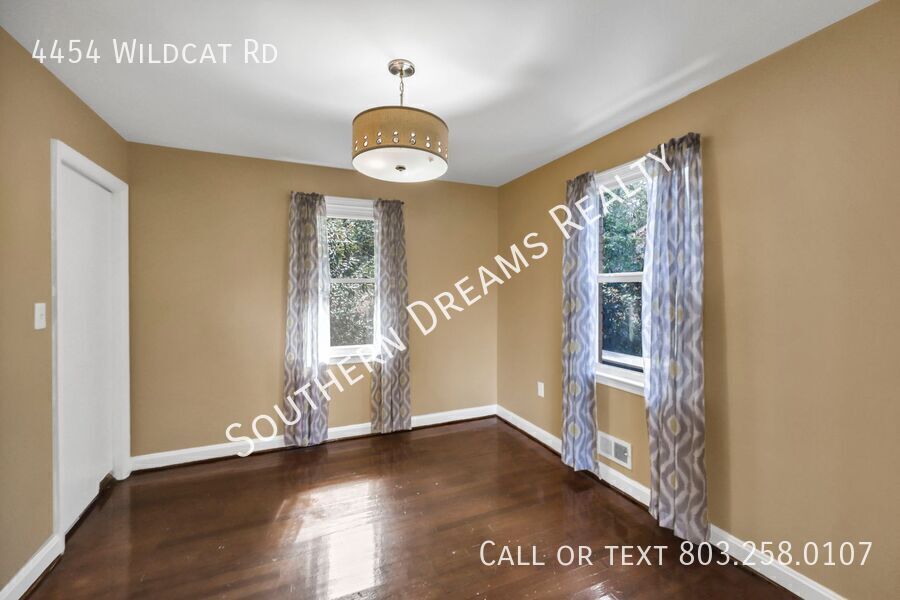 Welcome to 4454 Wildcat Rd, a spacious 3 bedroom, 2 bathroom home offering 1,684 square feet of comfortable living space in a convenient location. Situated just a little over 10 minutes from the University of South Carolina, this home is ideal for college students looking to be close to campus while enjoying extra space, or for a family wanting room to spread out. Inside, you’ll find a functional layout with generous living areas and well-sized bedrooms. The kitchen comes equipped with a stove, oven, and refrigerator, making move-in easy and convenient. With 1,684 square feet, there’s plenty of room for relaxing, entertaining, or setting up a home office or study space. Outside, the large yard and lot provide ample outdoor space to enjoy, whether it’s for gatherings, play, or simply relaxing in your own private setting. Located close to shopping, restaurants, and everyday conveniences, this home offers both comfort and accessibility. Don’t miss the opportunity to enjoy space, location, and convenience all in one at 4454 Wildcat Rd. PETS: Small dogs allowed with owner approval. Cats ok. Maximum of 2 pets (no restrictive/aggressive breeds). Pets require prior approval. Once approved, each pet requires a $250 refundable deposit and a $250 non-refundable fee. NO restricted breeds allowed. Call for restricted breed list. NON-REFUNDABLE RESERVATION FEE: To secure the property, Southern Dreams Realty requires a non-refundable reservation fee equal to one month’s rent, due within 48 hours of application approval. At move-in, this fee will be applied toward the security deposit. VIEWING INSTRUCTIONS: Ready for showings. Schedule your showing today! APPLICATION, TERMS, & FEES: NON-REFUNDABLE Application Fee: $75 per person (18 years and older) Administrative Fee: $100 one-time, due at approval RESIDENT BENEFITS PACKAGE – Delivers savings and convenience to residents. By applying, Applicant agrees to be enrolled and to pay the applicable cost of $30/month, payable with rent. Not included in advertised rental price. Learn More at *One-Time Late Fee Waiver *Missed Appointment Fee and Lockout Reimbursement *$1,000 Accidental Damage Reimbursement *Overnight Stay Reimbursement *Move-In & Move-Out Utility Concierge Service *Free Drain Maintenance Pack & Pest Control Kit *24/7 Maintenance Reporting *Online Rent Payments & Tenant Portal Access *Free Home Buying Assistance *Additional Discounts & Services (Annual Retail Value: $2,700+) RENT PAYMENT OPTIONS: All rent must be paid online via the tenant portal. Retail cash payment options are also available for a small convenience fee. SECURITY DEPOSIT: Typically equal to one month’s rent. Your non-refundable reservation fee converts to the security deposit at lease start. ERRORS & OMISSIONS: Every effort is made to provide reliable property information, but changes can occur. Applicants are encouraged to verify schools, pets, features, and HOA rules prior to signing a lease. Advertisements do not constitute a written agreement or guarantee. None