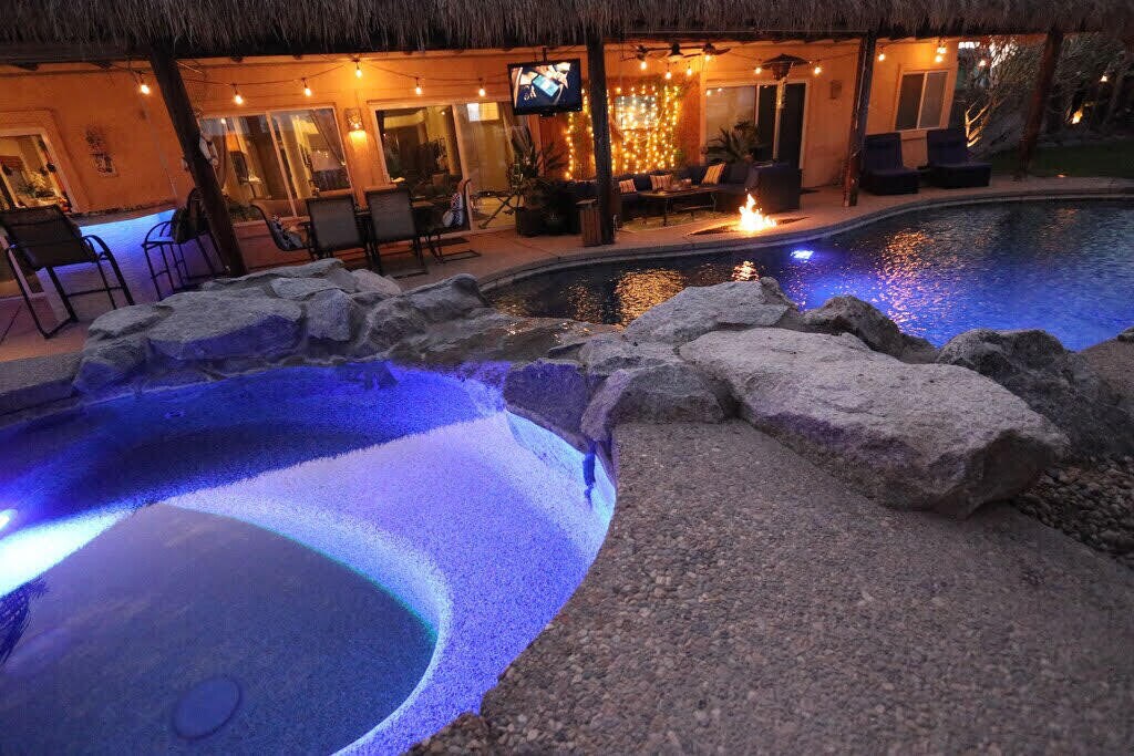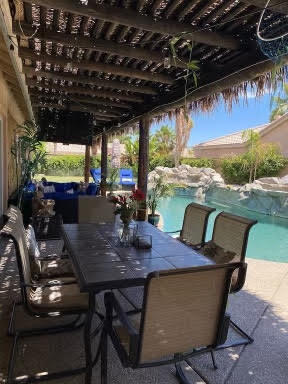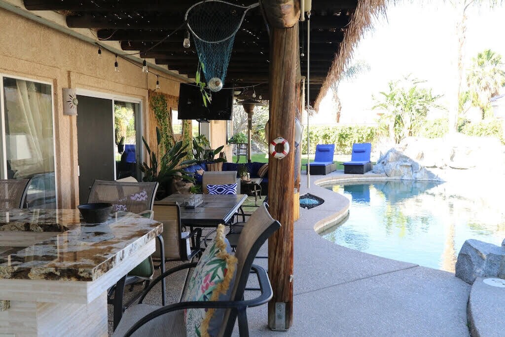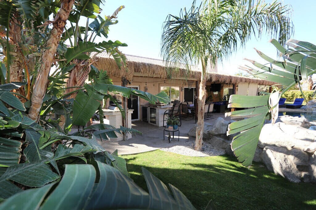 This amazing house has it all! Your ultimate relaxation pad has just hit the market. With a central location near local schools,churches,and even restaurants,you will never have to stray far from home. This turnkey rental has an incredible outdoor kitchen with a built in entertainment system. There's even a billiards table. The pool is the perfect place to hang out with friends and family in the warm desert sun. The home has plenty of parking INCLUDING a 40 foot RV space. Location is everything and this home is located within 7 miles of both Acrisure Arena and all your local music festivals in Indio. You'll never grow tired of viewing the Santa Rosa and San Jacinto mountains.