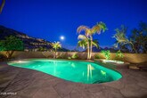 Welcome to the quintessential lock-and-leave second home in Arizona's WEALTHIEST Zip code,located within the prestigious GUARD-GATED Clearwater Hills community. This mid-century residence offers epic Camelback Mountain and city light views with primarily single-level living and guest accommodations below. Reconstructed in 2007 by award-winning builder Greg Hunt,the home blends iconic architecture with modern luxury. The main level features walnut hardwood floors,Hope wrought iron windows and doors,formal living and dining spaces,and a gourmet kitchen with Russian marble,dual islands,and Sub-Zero/Wolf appliances. Below,a bonus family room and guest bedrooms create the perfect retreat for visitors. A timeless hillside sanctuary that defines Paradise Valley living at its finest.