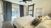 Welcome to this stunning 3 bedrooms, 2 bathrooms, 1 car garage, fully remodeled waterfront pool home, where modern elegance meets comfort and style. Nestled in a Cal De Sac, serene, quiet neighborhood, this bright and airy residence is the perfect retreat. With every corner thoughtfully designed, the home boasts an open-concept layout, allows natural light to flood every room. The new kitchen features sleek quartz countertops, ideal for cooking and entertaining. Step outside to your own private paradise - the pool creating a tranquil escape just steps from your door. Whether you're relaxing by the pool or in the Jacuzzi hosting friends or retreating to one of the beautifully appointed bedrooms, this home offers the perfect balance of luxury & peaceful living. Huge walk-in closets. Can be rented unfurnished or furnished.