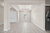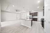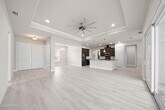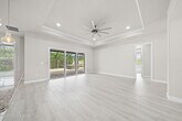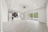 Located in the highly desirable gated community of Laguna Village,this stunning 2018-built home is move-in ready. From the moment you enter,you'll be greeted by tray ceilings,recessed lighting,and elegant wood-look tile flooring that flows throughout,with no carpet anywhere. The open-concept layout highlights the spacious living,dining,and kitchen areas,with natural light streaming in through stackable triple sliders. The kitchen is a chef's delight,featuring granite countertops,abundant cabinetry,and stainless steel appliances. The primary en-suite offers a luxurious retreat with double vanities,a walk-in glass shower,and a private toilet. A dedicated laundry room includes a gas washer and dryer as well as a convenient laundry sink. Outdoors,enjoy the screened-in patio with pavers and an above-ground spa,perfect for relaxing or entertaining. A paver driveway adds curb appeal,while the garage is equipped with a Tesla charging station for added convenience.