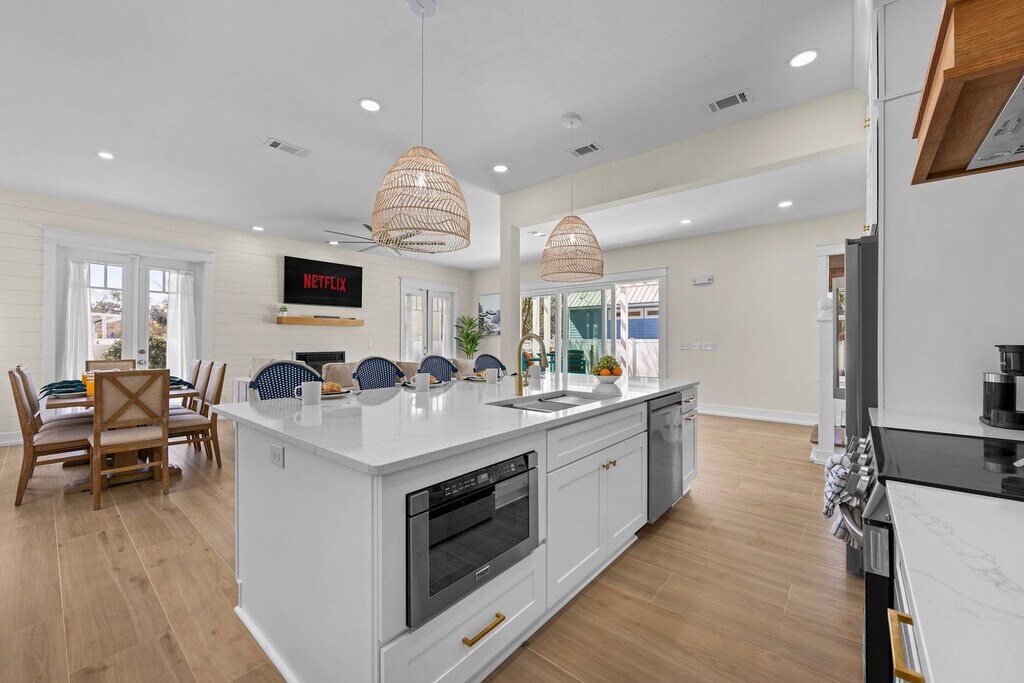 The advertised rate of $15,655/month is the lowest available price, based on a 30 day(s) stay with a move-in date of August 29, 2026. Rates vary depending on the duration of stay, season, and other parameters. For exact pricing and additional pricing components, please visit our website and enter your desired move-in and move-out dates. The rate is applicable when billed upfront; it can be higher if billed in multiple payments. Feel at home in Destin Beach House, a spacious, fully renovated 5-bedroom Crystal Beach retreat just 2 blocks from Destin’s famous white-sand beaches. This home features a fully equipped kitchen, smart TVs with YouTube TV, high-speed Wi-Fi, washer/dryer, and keyless entry. Enjoy the private pool, game room with Ping Pong, Buck Hunter arcade, and cornhole. Outdoor amenities include a propane BBQ, fire pit, and a small putting green. Pool heating is available year-round for an additional fee. Pets are welcome for a $200 fee. Located in the heart of Crystal Beach, this home is directly across from the Destin Commons with plenty of shopping, entertainment, and restaurants. The Silver Sands Outlets are within a few minutes drive East with more shopping, restaurants, and a play area for kids. There are plenty of public beach accesses close by within walking/golf cart distance. Airport distances: Destin FL (VPS) - 17 miles, Panama City FL (ECP) - 48 miles, Pensacola FL (PNS) - 75 miles. Quiet hours are between 10:00 PM and 7:00 AM. Check-in is at 4:00 PM CST and check-out is at 10:00 AM CST. A maximum of 2 house-trained dogs are permitted with a $200 non-refundable pet fee due before check-in. Golf cart use is not included for guests under 25 years old. Only registered guests listed on the reservation are allowed on the property. No unapproved visitors, drop-ins, or extra overnight guests are allowed. If your guest count changes, your reservation must be updated in advance. Any cleanup of bodily fluids (indoors or outdoors) will result in additional cleaning and sanitation charges. Trash must be taken to the curb on Monday and Thursday evenings for Tuesday and Friday pickup. Excess trash or missed pickup days may incur additional charges. Trash cans must be returned to the home after pickup. All issues or damage must be reported immediately. Guests may be held financially responsible for unreported issues or damage discovered after check-out. [SI]