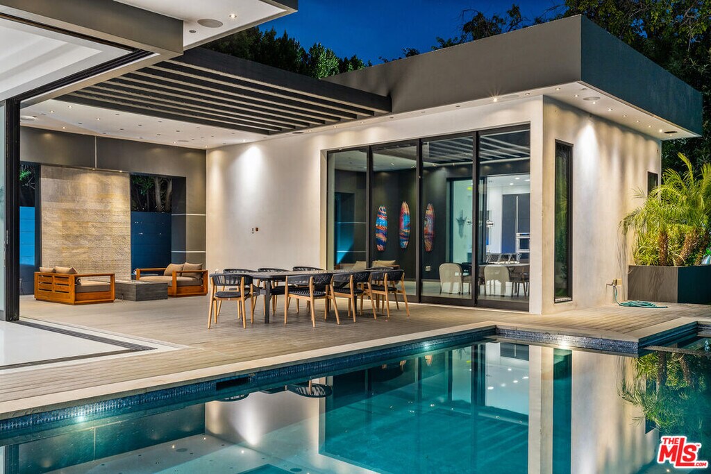 FULLY FURNISHED AND AVAILABLE FOR LONG OR SHORT TERM. Artfully designed SINGLE STORY home with exquisite material and quality in a prime location. Welcome to this luxurious Newer Construction 2016 home in the heart of Sherman Oaks masterfully laid~out by local architects to reflect modern California indoor-outdoor living..~ 4458 Mammoth features an open space single level floor plan with 4 oversized bedrooms and 4.5 baths and luxurious finishes throughout. Those finishes and features include tons of natural light, beautiful recessed lighting throughout, skylights in the elegant entryway and master, custom cabinetry finishes, a redone higher end kitchen island, porcelain tile throughout, and Large electric Fleetwood doors that open automatically with a press of a button to a beautifully redone deck & pool. Cozy fireplaces in Master bedroom, Living Room, Guest House, and an outdoor fire pit to top it all. This home was built with all the tech use in mind, you will find the RTI Home Automation system that controls music throughout the house, doorbird gate system installed for privacy and peace of mind, a full outdoor security camera system, and much more. Each ensuite room has a resort style feel with heating on the bathroom floors and tons of closet space. The elegant master bedroom features an enormous walk-in closet & a contemporary fireplace which leads to the Master bathroom which spoils with a large double rain shower, double vanities that any couple will love & heated floors. The home comes with a gourmet kitchen with a gorgeous redone center island, stainless steel appliances, a large walk in pantry & a cooled wine cellar. Electric floor to ceiling glass sliders, open by themselves with a press of a button to lead you out to lush landscaping sparkling pool and~lounge area, and~sleek decking~for entertaining.~ In addition there is a guest house with 1 bedroom/1 bathroom that includes a kitchen, fireplace, and living area. Beautifully newly installed wood floors give the guest house a warm cozy feeing. A perfect in-law set up, extended family, or airbnb/additional income opportunity.~ Close to the Sherman Oaks fashion square, great schools, fine dining, and more. Square footage includes garage. MLS# 25588097
