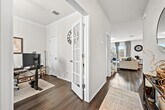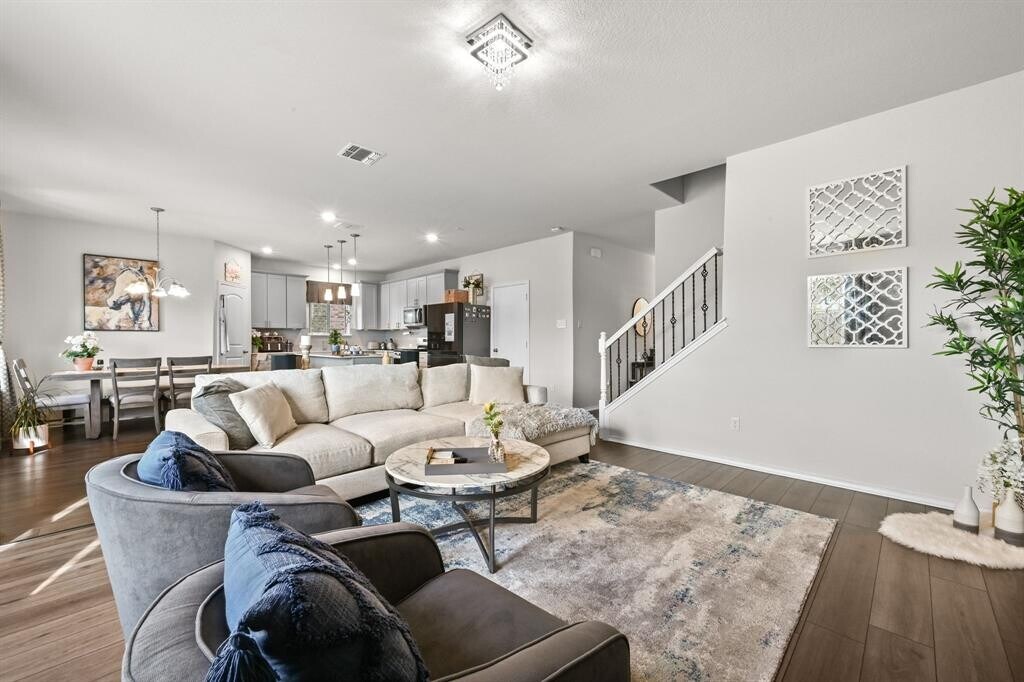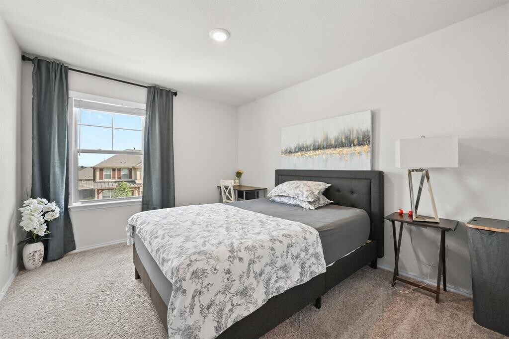 Immaculately maintained & filled with thoughtful upgrades, this pristine 5-bedroom 2.5-bathroom beauty offers an elevated living experience from the moment you step inside. Gorgeous luxury vinyl plank floors sweep across the 1st level, setting the tone for a warm yet upscale atmosphere. Just off the entry is a versatile dedicated office with French doors—ideal for working from home and counted as one of the 5 spacious bedrooms. The open-concept floor plan seamlessly connects the living room & kitchen, making the heart of the home bright, inviting, & perfect for both daily living & entertaining. The kitchen feels straight out of a designer magazine with striking quartz countertops, gray cabinets with modern hardware, an island with pendant lighting, and plenty of prep & storage space. Upstairs, the primary suite delivers a peaceful retreat with a spa-inspired en suite bath featuring a large walk-in shower & expansive walk-in closet. 3 additional bedrooms, a loft, & a laundry room create room for everyone. The loft also offers access to a rare extra storage space—a spacious closet perfect for seasonal items or holiday décor. Step outside to an oversized backyard with no immediate neighbors behind, giving you privacy & room to relax or entertain. To make daily life easier, a top-of-the-line refrigerator, washer, & dryer are all included. Located in the vibrant Sunfield community, residents enjoy unparalleled resort-style amenities, including an elementary school, walking trails, fishing ponds, on-site lifestyle activities coordinator, open-air pavilions, a splash park, a junior-size Olympic swimming pool, & 2 lazy rivers. Sunfield’s prime location offers unbeatable convenience too! Just 3 minutes to IH-35, 5 minutes to the 130 toll road, & mere moments from shopping, dining, & everyday essentials. This isn’t your typical rental—this is a home that has been cared for, loved & upgraded with intention. Perfect for someone who values quality, comfort, & style!