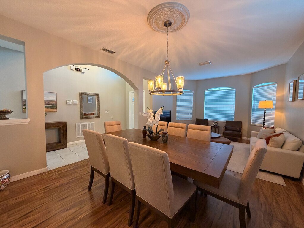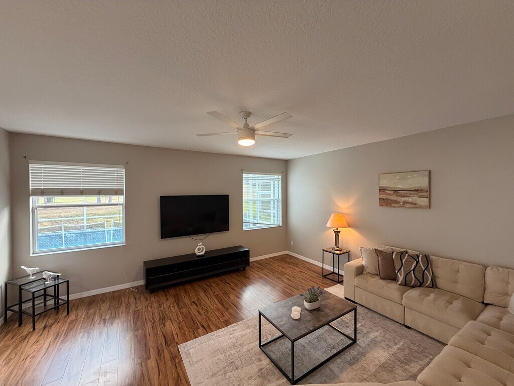 Make an appointment quickly to view this exceptional 5-bedroom, 3-bathroom pool home located near Disney in the highly desirable Highlands Reserve Golf Community in Davenport. Offering golf course frontage and resort-style living, this spacious home delivers comfort, convenience, and peace of mind. Designed with a highly livable and functional layout, the home features recently upgraded kitchen with granite countertops in the kitchen and bathrooms, ideal for both everyday living and entertaining. Major upgrades include a newer roof, newer air conditioning, and a newer pool heater, ensuring year-round comfort and reliability. Home is fully equipped with state of the art alarm and video surveillance system. Step outside to a large pool deck with a covered lanai, where you can unwind while enjoying tranquil views of mature trees and the golf course—perfect for relaxing at the end of a long day or hosting guests. Pool and Landscaping Services Included in rent. Peaceful yet well located, this home is just minutes from major roadways, shopping, dining, entertainment, and world-famous Disney attractions. Residents also enjoy access to community amenities including golf, parks, and recreation. *Home is staged for photos. Pets are negotiable with owner approval, breed restrictions apply. Additional fees may apply. Professionally managed by Atrium Management. Call to schedule your private showing today! **BONUS AMENITY INCLUDED** A portion of Tenant's total amount due will be used to have HVAC filters delivered to their home approximately every 60 days under the Utility & Maintenance Reduction Program.** This is a rare opportunity to rent a golf-front home in a premier resort community—don’t miss this one!