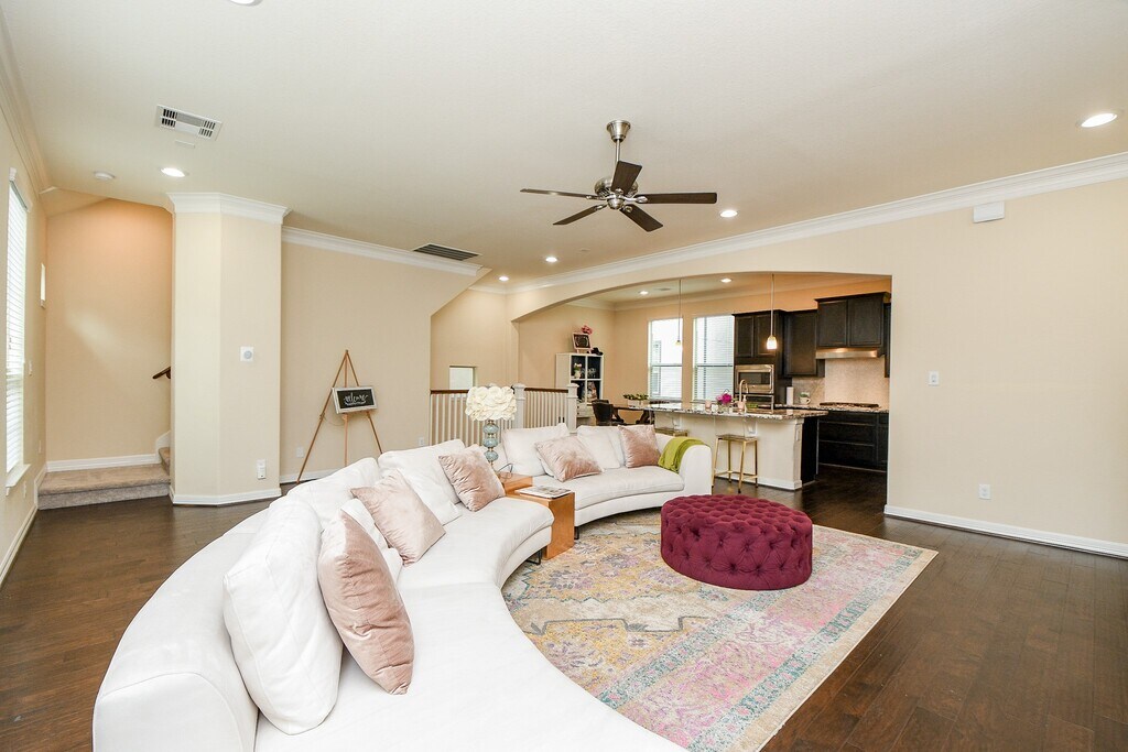 Discover modern living in this upscale rental in a gated community near Bayou Bend. With seamless access to I-45,I-59,I-10,and the Metro Rail on Navigation Blvd,this home is about five minutes from downtown Houston and near the East River Houston development with dining,retail,and entertainment. Enjoy proximity to the East River 9 Golf Course and other city attractions. The open-entry floor plan includes a first-floor flex room or bedroom with full bath access leading to a private backyard. A stylish kitchen on the second floor features a gas stove,oversized island,and stainless-steel refrigerator flowing into the open living area. Upstairs,the third floor offers a spacious primary bedroom with a bath featuring a soaking tub and walk-in shower,an expansive closet,full washer and dryer,plus a secondary bedroom with an en-suite bath. The home also includes a water-softening system. Experience an elevated lifestyle where modern design meets refined living. MLS# 57752651