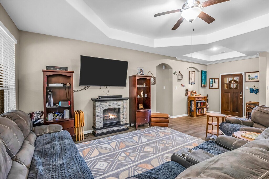 Don't miss out on this desirable Madison Floor Plan in Encino Estates! This property offers a serene wooded backdrop,ensuring privacy with no rear neighbors. The rustic ranch exterior complements the open concept living,kitchen,and dining areas. The split bedroom layout includes a versatile space perfect for a home office or nursery. The kitchen features a cook's dream triangle layout and ample storage. The main areas boast beautiful laminate flooring for easy maintenance. The huge backyard is ideal for future plans,while the community park and convenient access to 99 and Hwy 90 add to the appeal. Live the dream in Encino Estates! MLS# 5590499