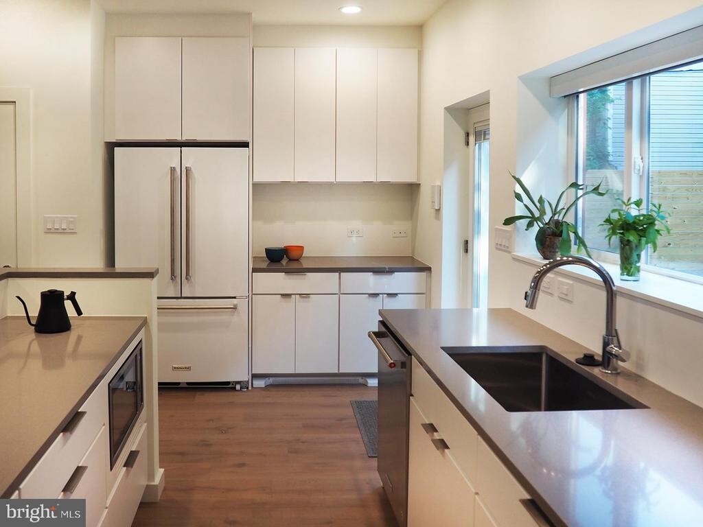 Live in the center of downtown while being in nature and getting to know your neighbors! Ridge Place is a brand new, eight-unit community centered around a landscaped courtyard where you relax in the serene and secure outdoor space while being two blocks away from the Convention Center, in the midst of Shaw, Noma, Penn Quarter and the U Street Corridor, walkable to restaurants, grocery stores, bars, cafes, gyms, and offices in the central business district. Home is 3 bedrooms, 3 bath ensuite, 14' high double height living spaces, huge windows for maximum light and air flow throughout, two private roof terraces, and 2 courtyard facing patios. Residence is 1,620 square feet with an additional 775 square feet of private outdoor space. Features Include: New construction Modern design Walk in closets throughout Multi-level private roof terraces 2 Private garden patios Gated shared courtyard Wide plank oak flooring Floor-to-ceiling windows Full-sized washer/dryer Stainless steel Kitchen Aid appliances including gas range 14' ceilings in living room Cross ventilation-all units with exposures to North and South allowing for the continual circulation of fresh air Custom cabinetry open kitchens Corian kitchen backsplash Dazzling Silestone countertops with bar counter Glass stall showers with showerhead and handshower Soaking tub 12x24 porcelain tile in all bathrooms Designer Energy saving LED lighting Custom Mechoshade window treatments Wired for cable, phone and internet Prime location in the center of dining, business, entertainment, and all metro lines/transportation Investors Management, Inc. EHO