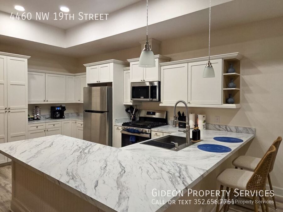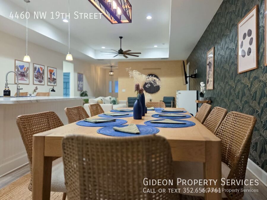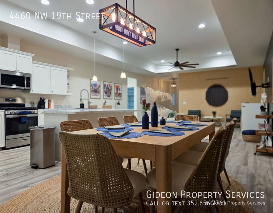 Welcome to this stunning fully furnished 4-bedroom, 2.5-bathroom home located in the heart of Gainesville, FL. This spacious house features laminate flooring throughout, granite countertops, and modern appliances including a dishwasher and microwave. The 2-car garage provides ample parking and storage space. Enjoy the convenience of a washer and dryer in unit, as well as walk-in closets and a walk-in shower. Stay comfortable year-round with ceiling fans in every room. Don't miss out on the opportunity to make this beautiful house your new home. SCHOOL ZONES: Norton Elementary School, Westwood Middle School, Gainesville High School 2 Car Garage Granite Countertops Laminate Flooring Throughout Lawn Maintenance Included Walk In Closets Walk In Shower Washer/Dryer In Unit