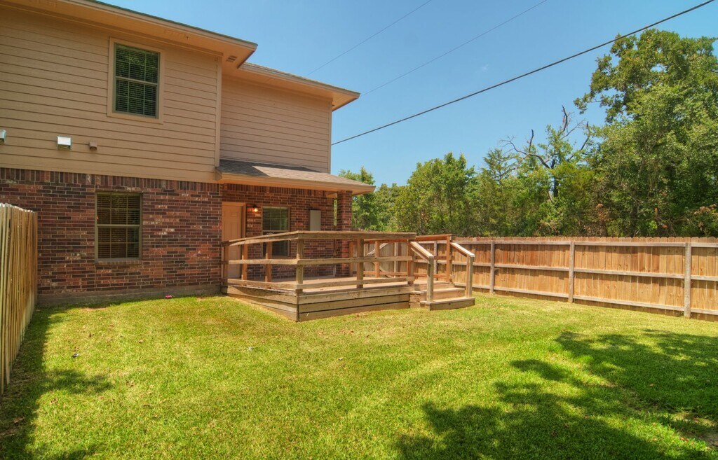 Incredibly SPACIOUS 3 bed, 3 bath duplex located in beautiful Aggie Acres. This home offers an open concept floor plan with a large kitchen complete with granite countertops and tons of cabinet space. Each of the bedrooms has its own attached full bathroom and great closet space! The large, fenced backyard complete with a deck is great for entertaining! This property WILL NOT last!