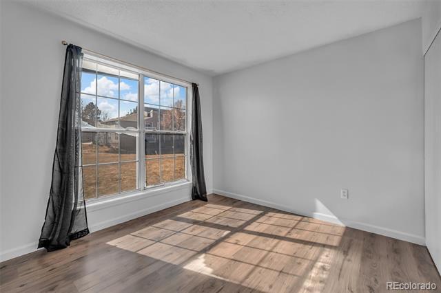 This well-maintained 2-bedroom, 1-bath condo. The open-concept living room features a cozy wood-burning fireplace and opens to a freshly upgraded private balcony—perfect for relaxing mornings or quiet evenings. Inside, you'll find a functional layout with a dedicated dining area, a well-appointed kitchen with ample storage, and two generously sized bedrooms that offer flexible use for guests, roommates, or a home office. Large windows bring in beautiful natural light, creating a bright and welcoming atmosphere throughout. Located within the Cherry Creek School District and just minutes from parks, shopping, and key RTD light rail stations this property offers both accessibility and everyday convenience. Condominium MLS# 9919084